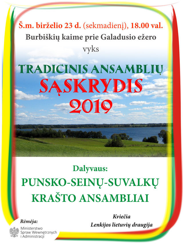 W niedzielę, 23 czerwca, o godz. 18.00 w Burbiszkach, leżących nad jeziorem Gaładuś, tuż przy polsko - litewskiej granicy, odbędzie się tradycyjny zlot litewskich zespołów ludowych z Sejneńszczyzny, czyli „Saskrydis".