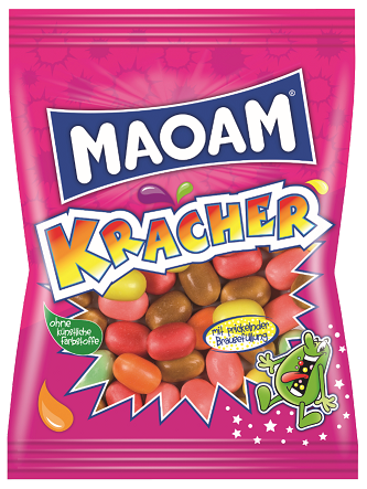 MAOAM KRACHER to gumy rozpuszczalne zapewniające unikalne doznania smakowe. Lekko musujące wnętrze ukryte jest w chrupiącej otoczce, dzięki czemu każdy pojedynczy KRACHER gwarantuje wyjątkowo intensywny smak. Do wyboru w wielu smakach: cytrynowym, malinowym, pomarańczowym, jabłkowym lub coli.