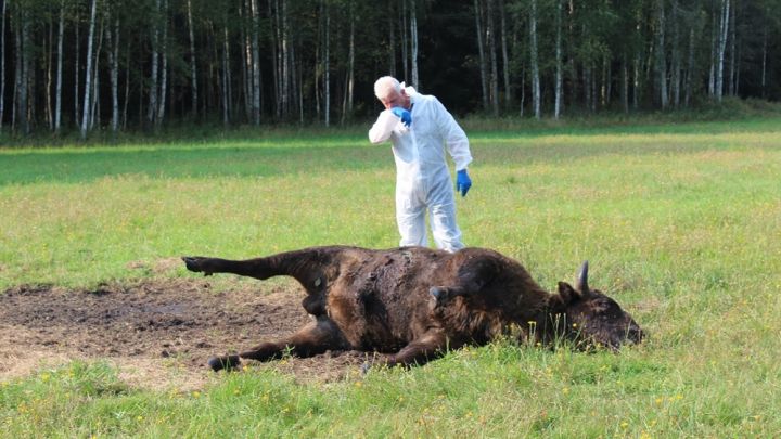 Kiedy się zbliżył, okazało się, że to żubr. Niestety zwierzę było martwe. Najprawdopodobniej nie żyło od kilku dni.