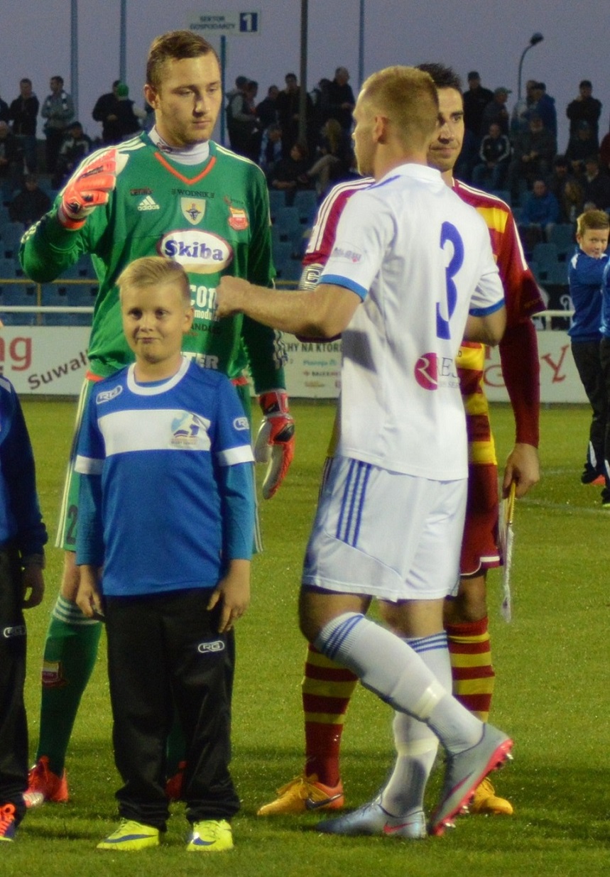 W poprzednich dwóch sezonach Damian Podleśny wypożyczony był z Gdańska do Chojniczanki Chojnice. Przeciwko Wigrom wystąpił trzykrotnie. W maju 2015 w Chojnicach gospodarze przegrali 2:3, a gole wbili mu Kamil Adamek, Bartosz Biel i Kamil Zapolnik. Jesienią 2015 w Suwałkach (na zdjęciu) Chojniczanka wygrała 1:0, a wiosną 2016 u siebie przegrała 0:1. Dwie minuty przed końcem bramkę dla Wigier zdobył Martin Baran.