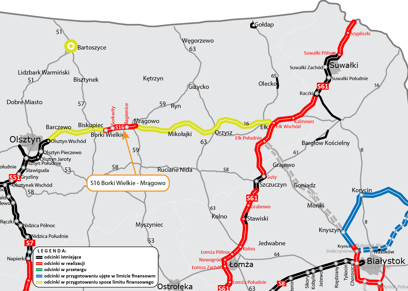Wojewoda Warmińsko-Mazurski wydał decyzję o zezwoleniu na realizację inwestycji drogowej (ZRID) dla budowy drogi ekspresowej S16 Borki Wielkie - Mrągowo. Niebawem ruszą prace budowlane.