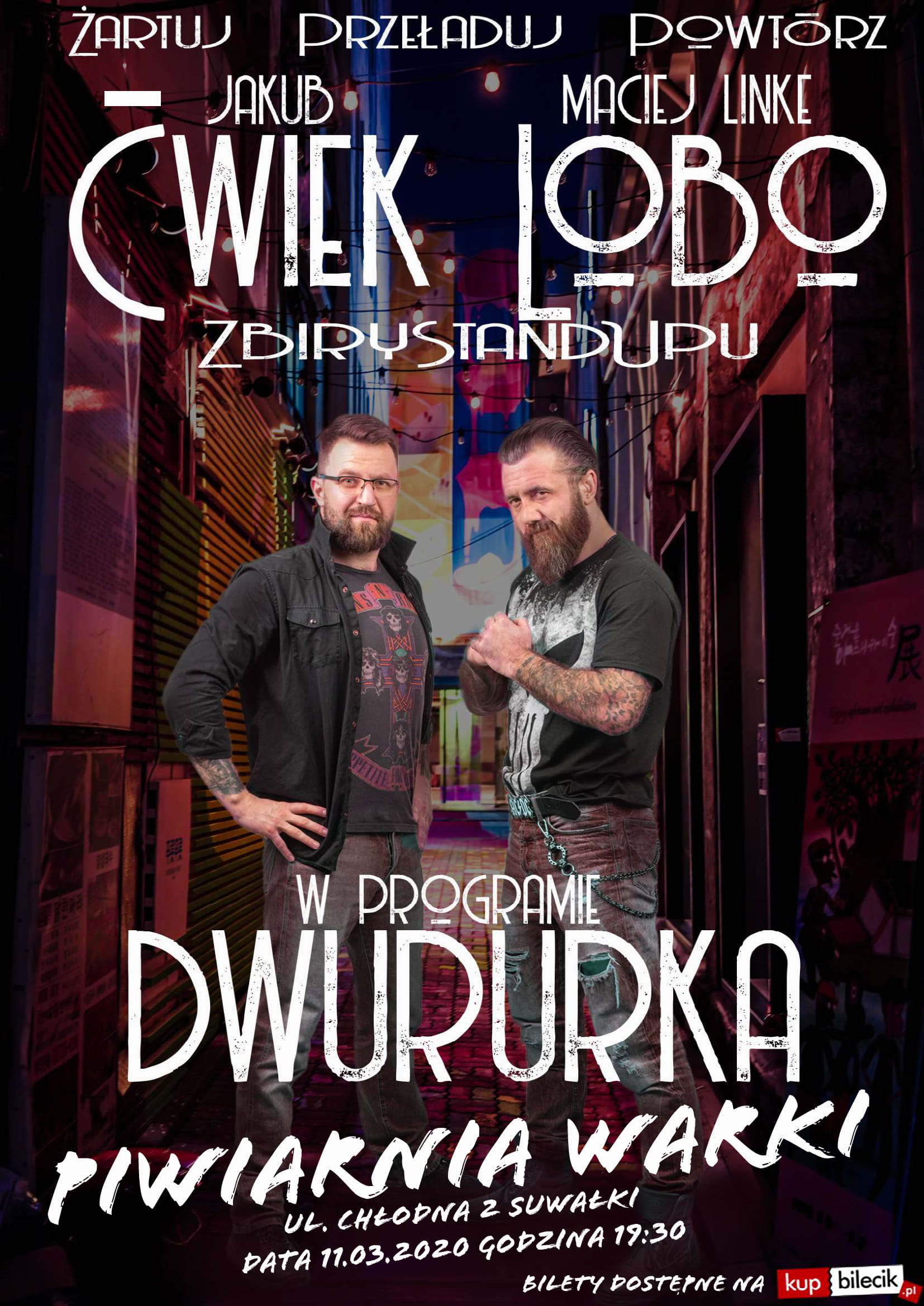 Czas na strzał z grubej rury! A najlepiej z dwóch! Mistrz sztuk walki Maciej "Lobo" Linke i pisarz Jakub "wciąż bez ksywy" Ćwiek - dwa brodate zbiry StandUpu - wjeżdżają z pełnym energii programem "Dwururka"! Opowiedzą o tym jaka jest prawdziwa cena piękna, o tym dlaczego niektóre matki są samotne, o zimnej wojnie z Wegatarianami, zdradach, facetach w ciąży, czy najbardziej patriotycznym polskim deserze!