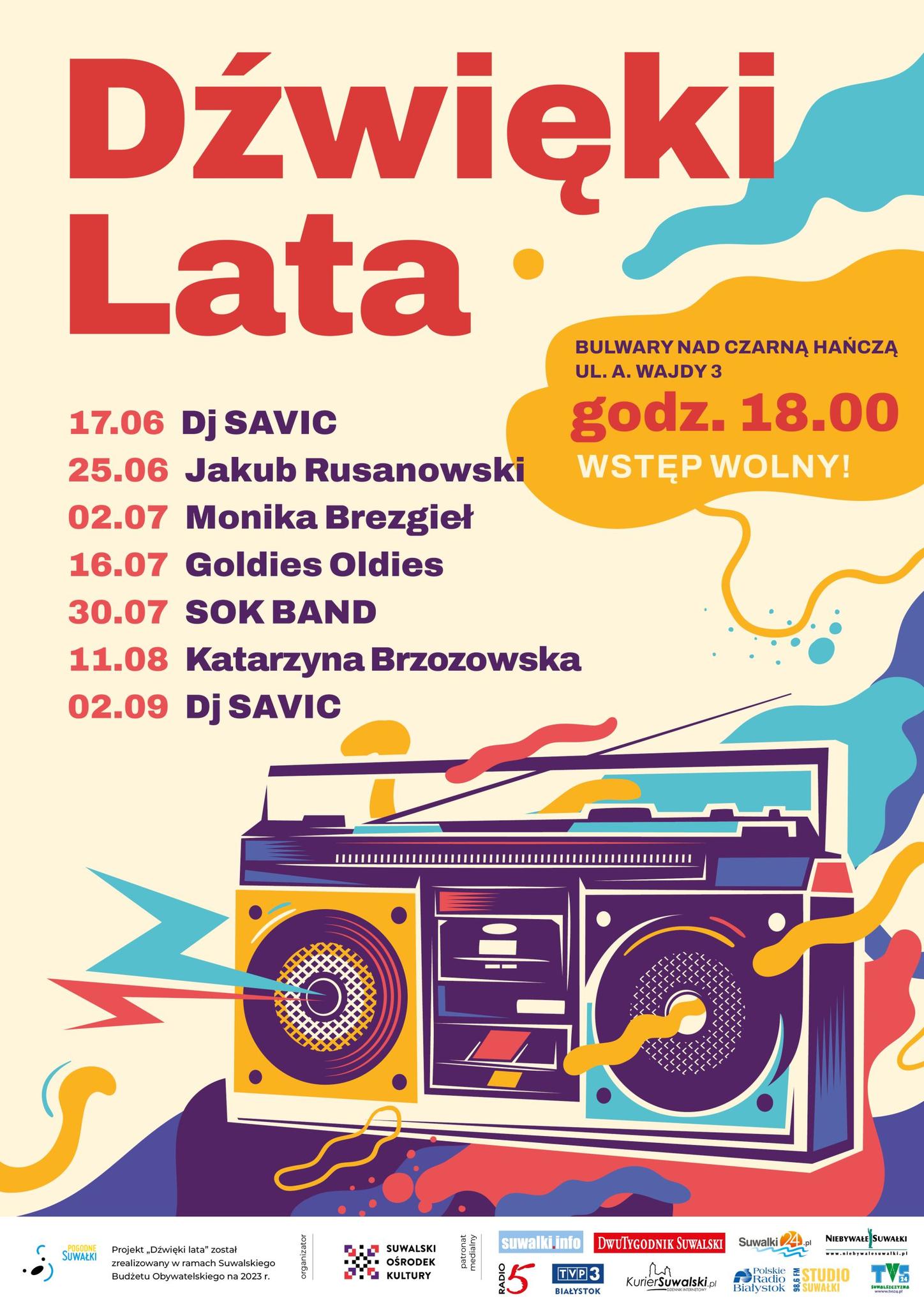 Zagrac miaÅ‚ DJ Savic, jednak, jak informuje Suwalski OÅ›rodek Kultury - wzwiÄ…zku z niesprzyjajÄ…cymi prognozami na jutrzejszy dzieÅ„, podjÄ™to decyzjÄ™ o zmianie terminu potaÅ„cówki na Bulwarach nad CzarnÄ… HaÅ„czÄ…. Na pierwszy koncert zapraszamy 25.06.2023 - wystÄ…pi Jakub Rusanowski, DJ Savic zagra 30 czerwca 2023 o godzinie 18.00.