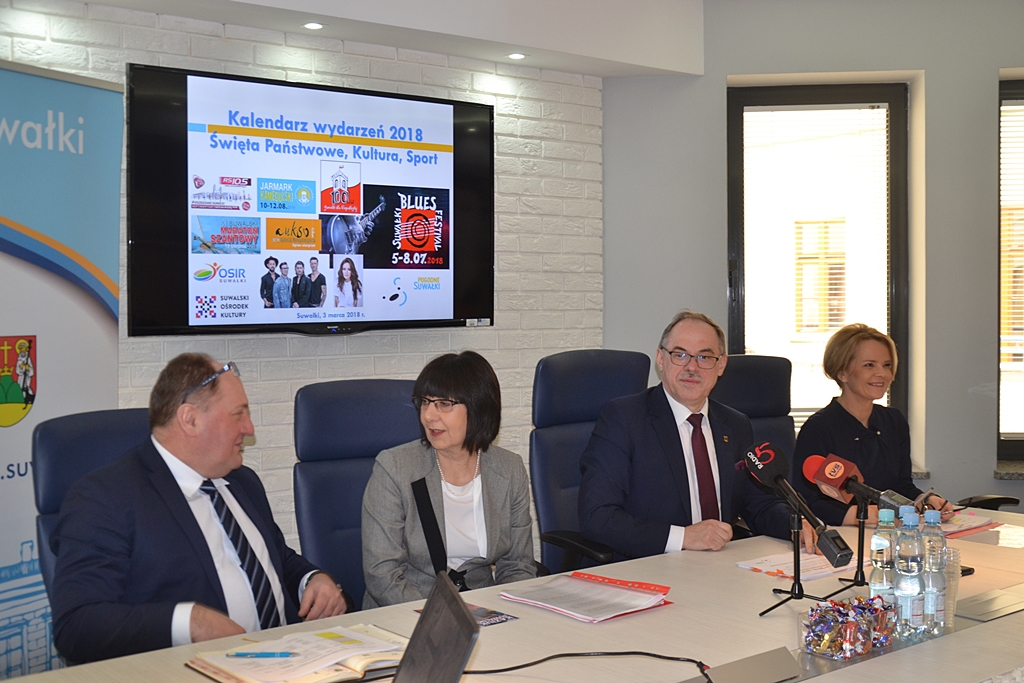 O kalendarzu wydarzeń kulturalnych i sportowych mówili w piątek (02.03) podczas specjalnej konferencji prasowej w suwalskim Urzędzie Miejskim Czesław Renkiewicz, Prezydent Miasta, Ewa Sidorek Zastępca Prezydenta, Alicja Andrulewicz, dyrektor Suwalskiego Ośrodka Kultury i Waldemar Borysewicz, dyrektor Ośrodka Sportu i Rekreacji w Suwałkach.
