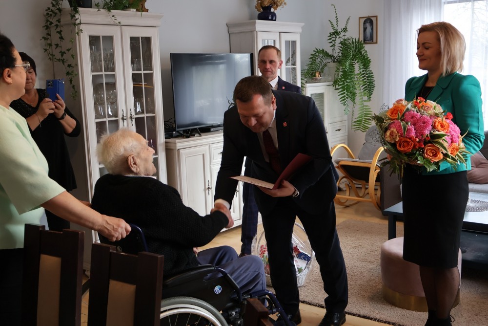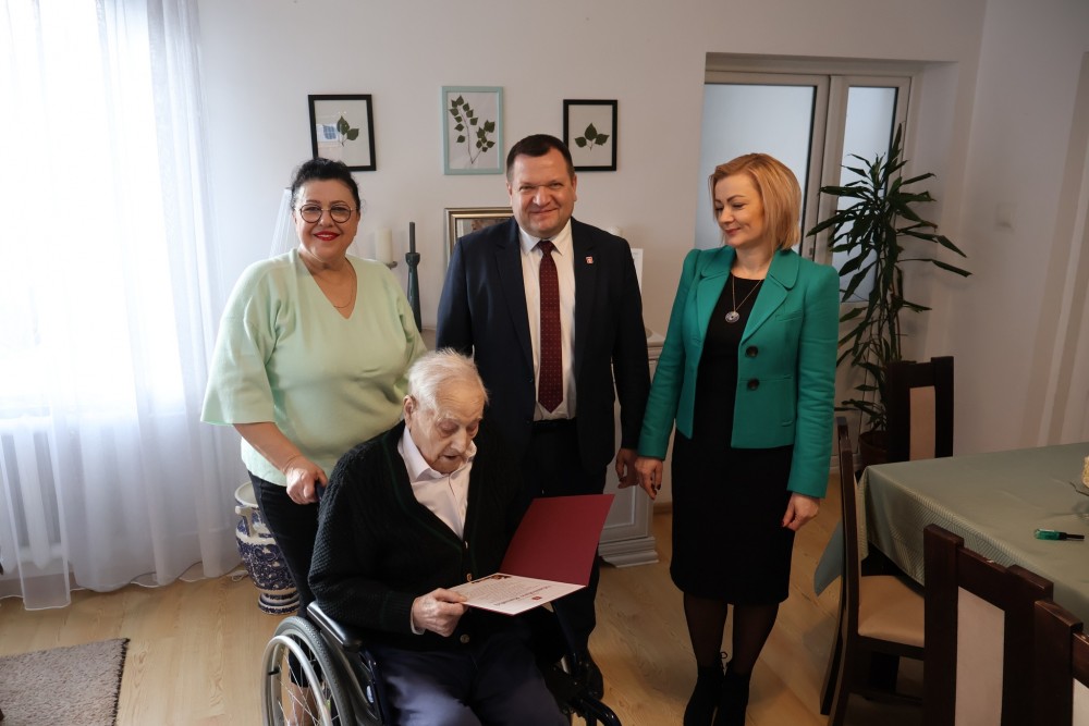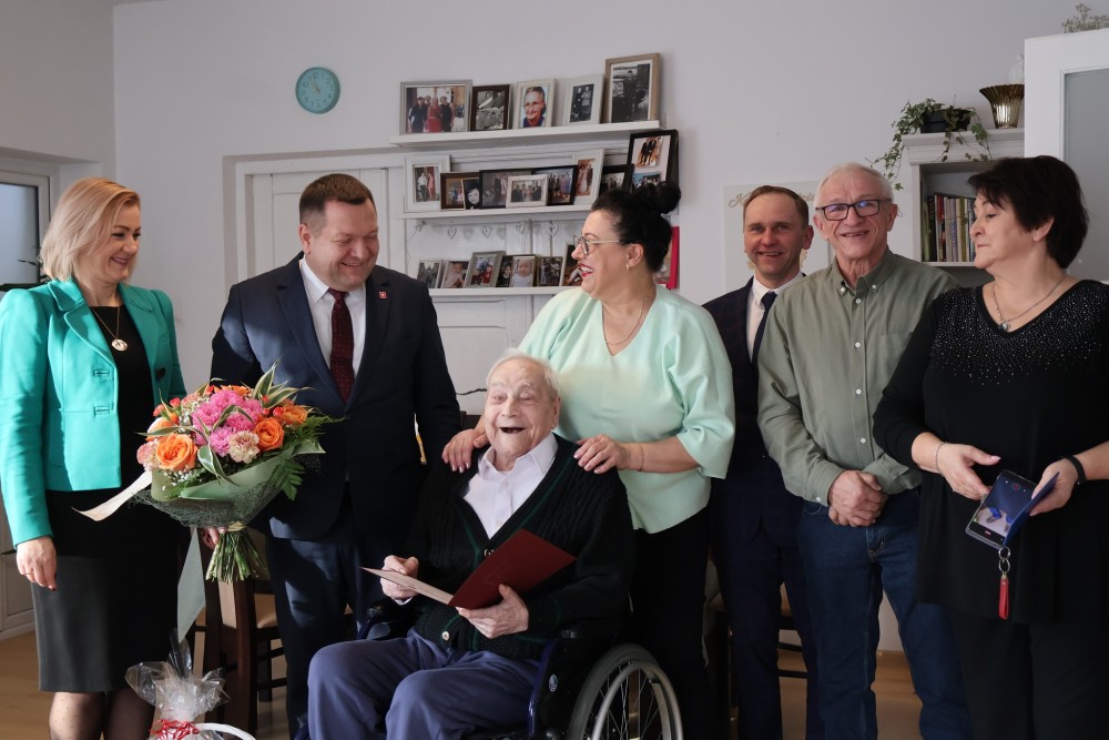 W piątek, 5 grudnia, Pan Stanisław Basałaj – mieszkaniec Suchej Wsi w gminie Raczki, świętował piękny Jubileusz 101. urodzin. Z okazji tej wyjątkowej rocznicy Szanownego Jubilata odwiedzili: Wójt Gminy Raczki Piotr Gajda, Sołtys wsi Sucha Wieś Marcin Faltyn oraz Kierownik Urzędu Stanu Cywilnego Emilia Tertel,