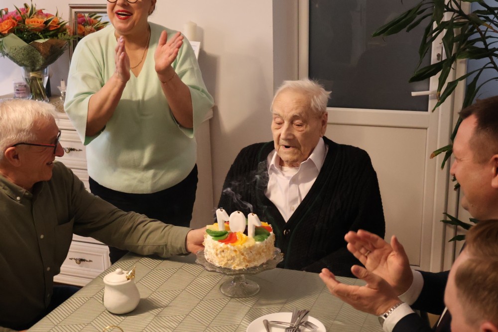 Podczas uroczystoÅ›ci Panu StanisÅ‚awowi wrÄ™czono kwiaty, list gratulacyjny oraz sÅ‚odki upominek. NastÄ™pnie odÅ›piewano wraz z rodzinÄ… ,,200 lat”, które Jubilat przyjÄ…Å‚ z radosnym i szczerym uÅ›miechem. DopeÅ‚nieniem Jubileuszu byÅ‚ tort i wzniesiony toast za zdrowie Jubilata.