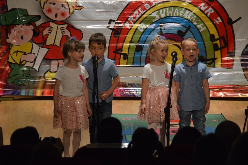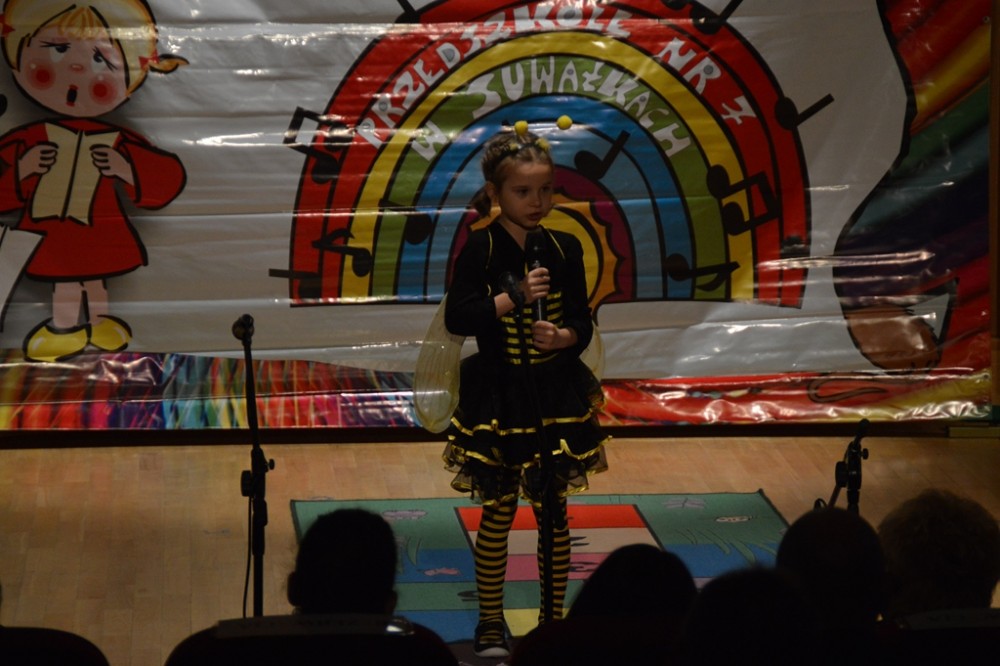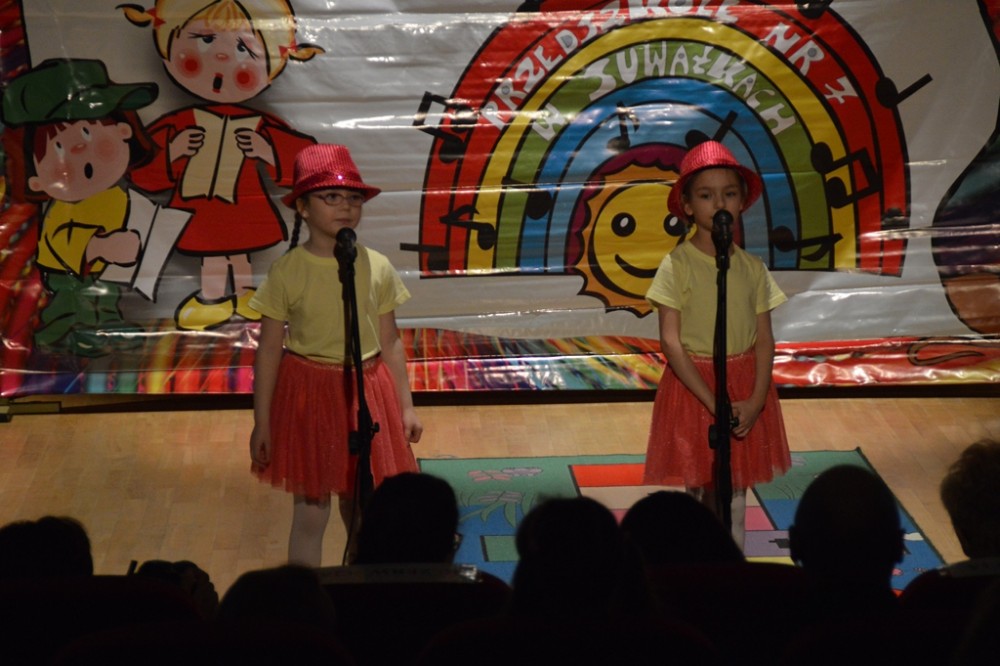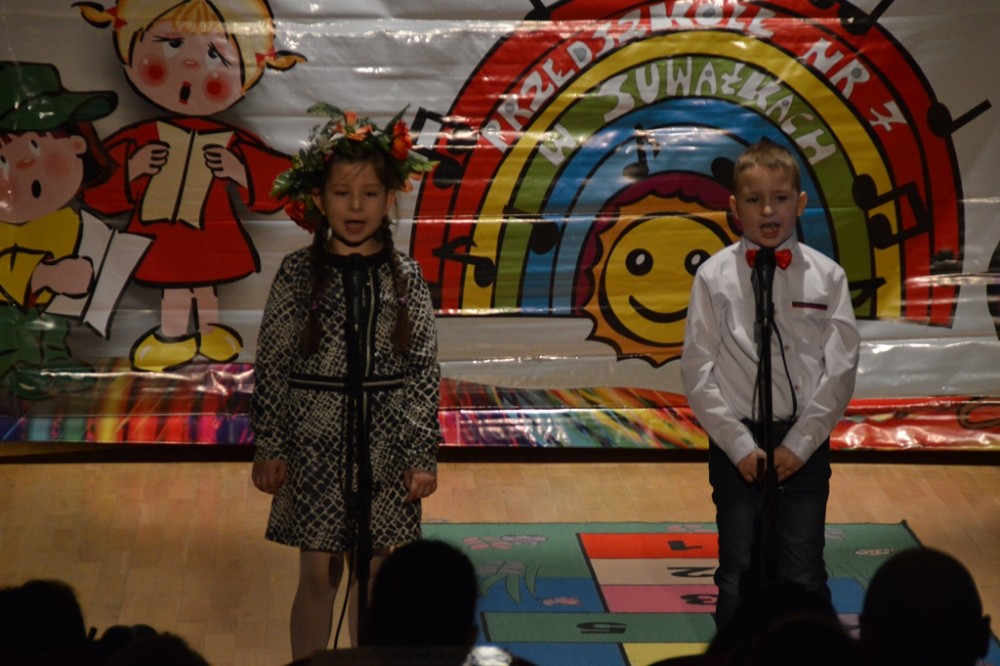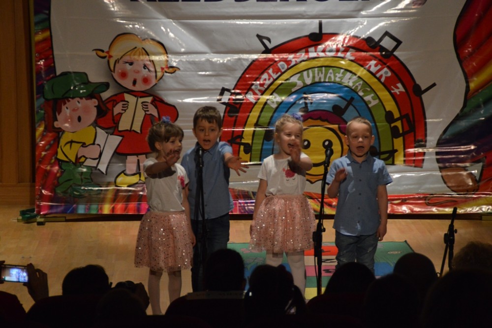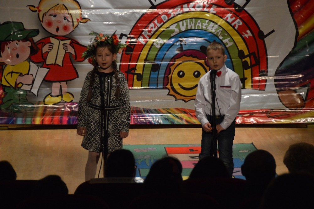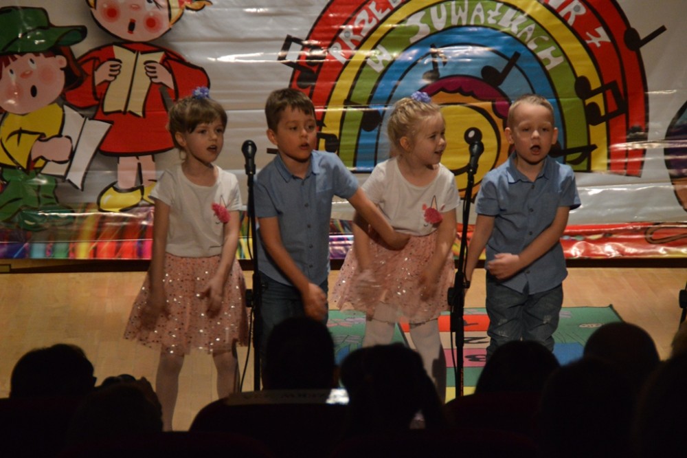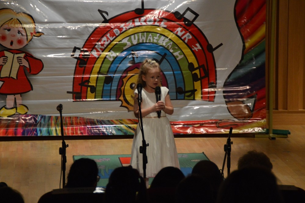 Umiejętności wokalne, ale też taneczne, aktorskie i recytatorskie zaprezentowali dziewczęta i chłopcy z suwalskich przedszkoli, a nawet Żłobka Miejskiego oraz z przedszkoli przy szkołach podstawowych w Płocicznie i Starym Folwarku.