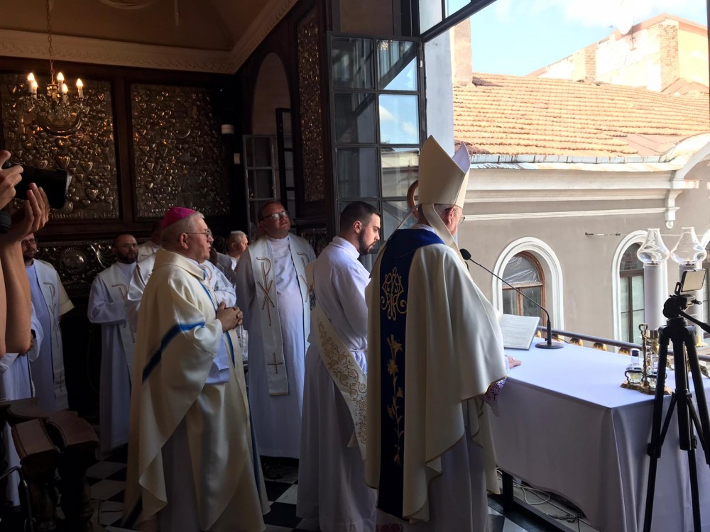 Pielgrzymów u Pani Ostrobramskiej powitali abp Stanisław Gądecki, bp Jerzy Mazur oraz ks. Tadeusz Jarecki, Inspektor Inspektorii Warszawskiej Zgromadzenia Księży Salezjanów. Wszyscy pątnicy leżąc krzyżem dziękowali Bogu i Matce Najświętszej za przeżyty czas rekolekcji w drodze. Zwieńczeniem osiągnięcia celu była wspólna Msza św. przed cudownym obrazem Matki Bożej Miłosierdzia w Ostrej Bramie, którą pod przewodnictwem abp. Stanisława Gądeckiego, przewodniczącego KEP, Homilię do pielgrzymów wygłosił bp Mazur.