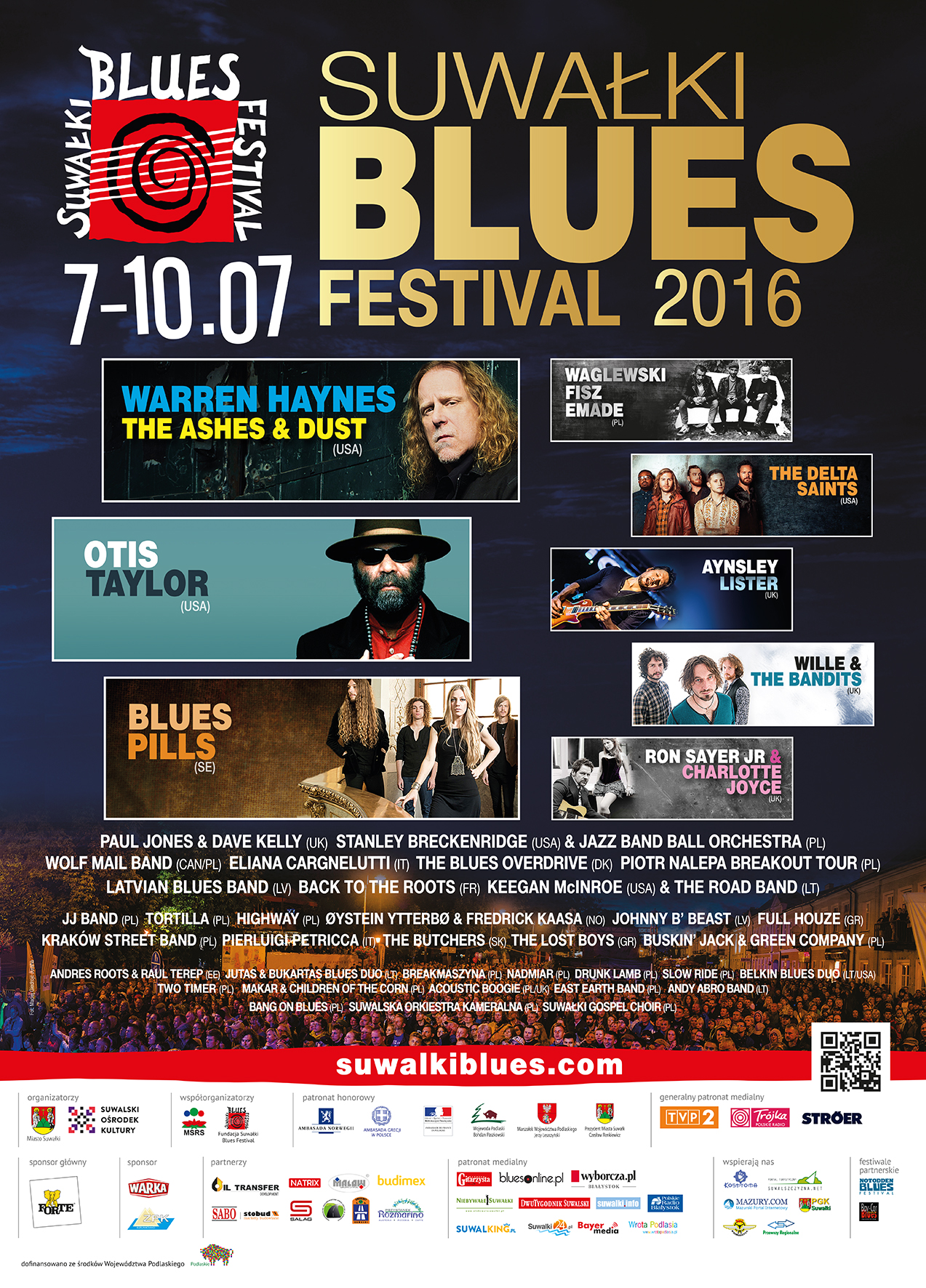 W czwartek, 7 lipca w Suwałkach rozpocznie się dziewiąty Suwałki Blues Festival. To największy bluesowy festiwal plenerowy kraju. W tym roku na dużej scenie przy Parku Konstytucji 3 Maja wystąpią: Warren Haynes The Ashes & Dust, Otis Taylor, Blues Pills, a także Waglewski Fisz Emade, The Delta Saints, Aynsley Lister, Wille & The Bandits, Ron Sayer Jr & Charlotte Joyce.Koncert otwarcia będzie transmitowany na antenie Programu Trzeciego Polskiego Radia.