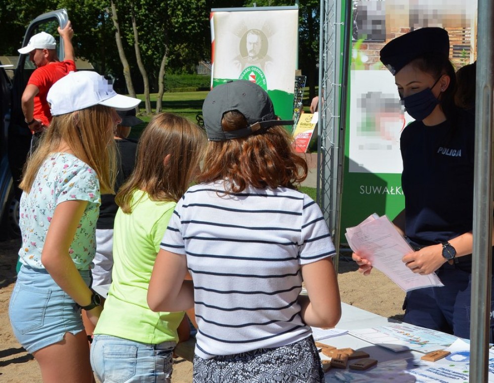 W ostatnich dniach, podczas spotkań z młodymi ludźmi, spędzającymi wakacje w Suwałkach i Starym Folwarku, policyjnym profilaktykom towarzyszyli przedstawiciele Placówki Straży Granicznej w Rutce Tartak, Powiatowej Stacji Sanitarno - Epidemiologicznej w Suwałkach oraz Wodnego Ochotniczego Pogotowia Ratunkowego.