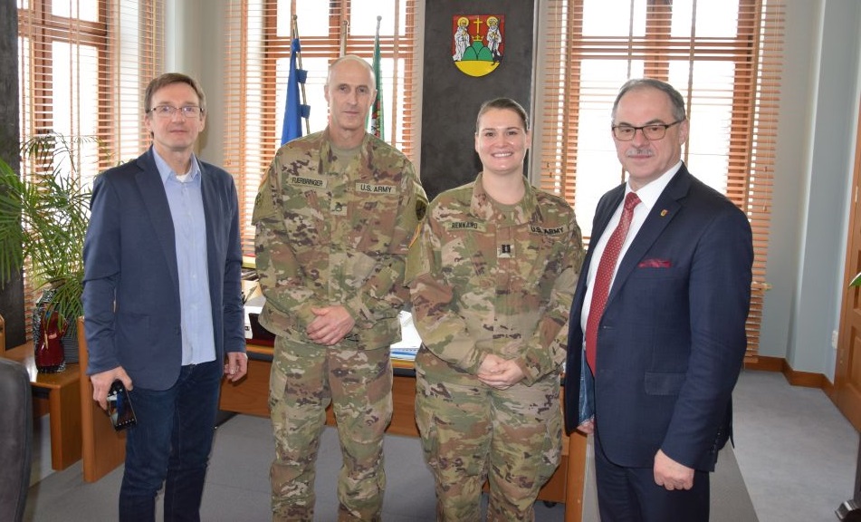 Czesław Renkiewicz, prezydent Suwałk spotkał się dziś z przedstawicielami zespołu ds. kontaktów z ludnością cywilną z Batalionowej Grupy Bojowej w ramach Wzmocnionej Wysuniętej Obecności NATO w Polsce.