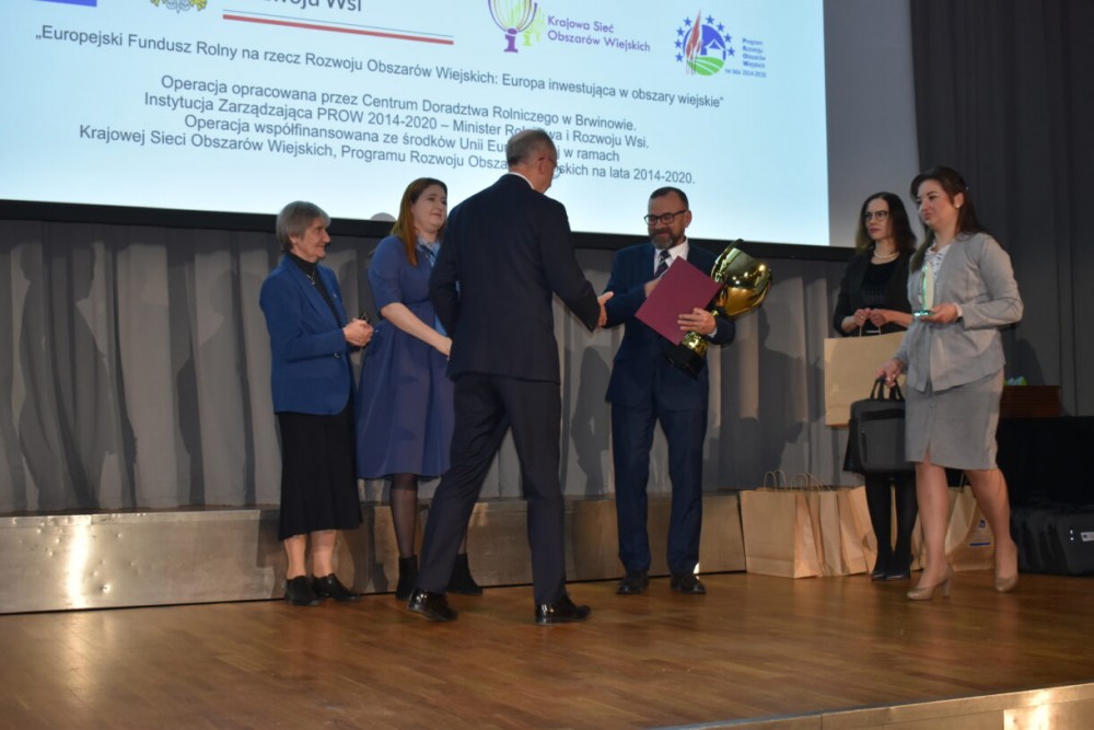 Dyplomy od Ministra Rolnictwa i Rozwoju Wsi Pana Henryka Kowalczyka oraz od Dyrektora Centrum Doradztwa Rolniczego w Brwinowie Pana Ireneusza Drozdowskiego a także puchary od Ministra Rolnictwa i Rozwoju Wsi wręczyła Pani Minister Anna Gembicka.