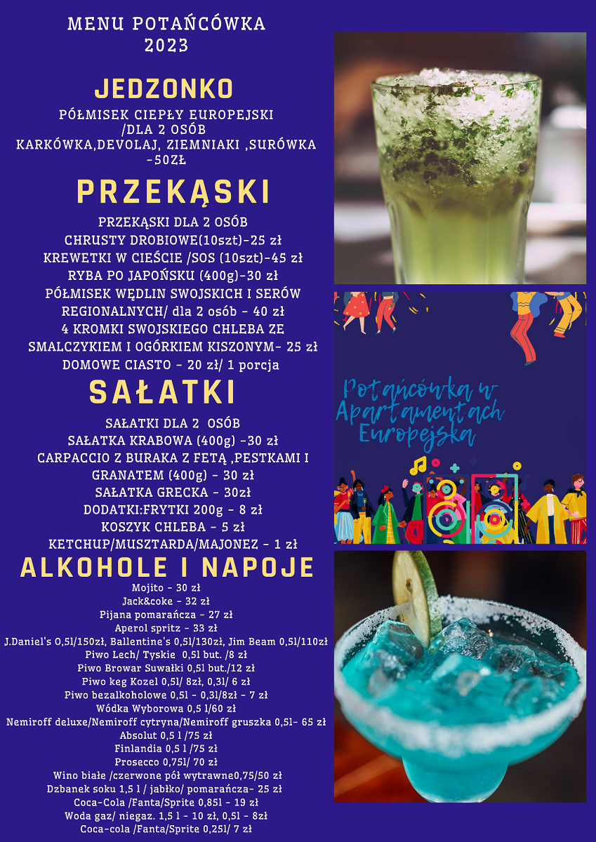 PotaÅ„cówka, zabawa przy muzyce na żywo rozpocznie siÄ™ w sobotni wieczór o godz. 20:00 i potrwa do 3:00 nad ranem w niedzielÄ™. Åšwiatowe i polskie przeboje zagra zespóÅ‚ muzyczny The Dance SuwaÅ‚ki, a w przerwach miÄ™dzy wyczynami na parkiecie bÄ™dzie można wybrać i skosztować wspaniaÅ‚oÅ›ci z PotaÅ„cówkowego Menu.