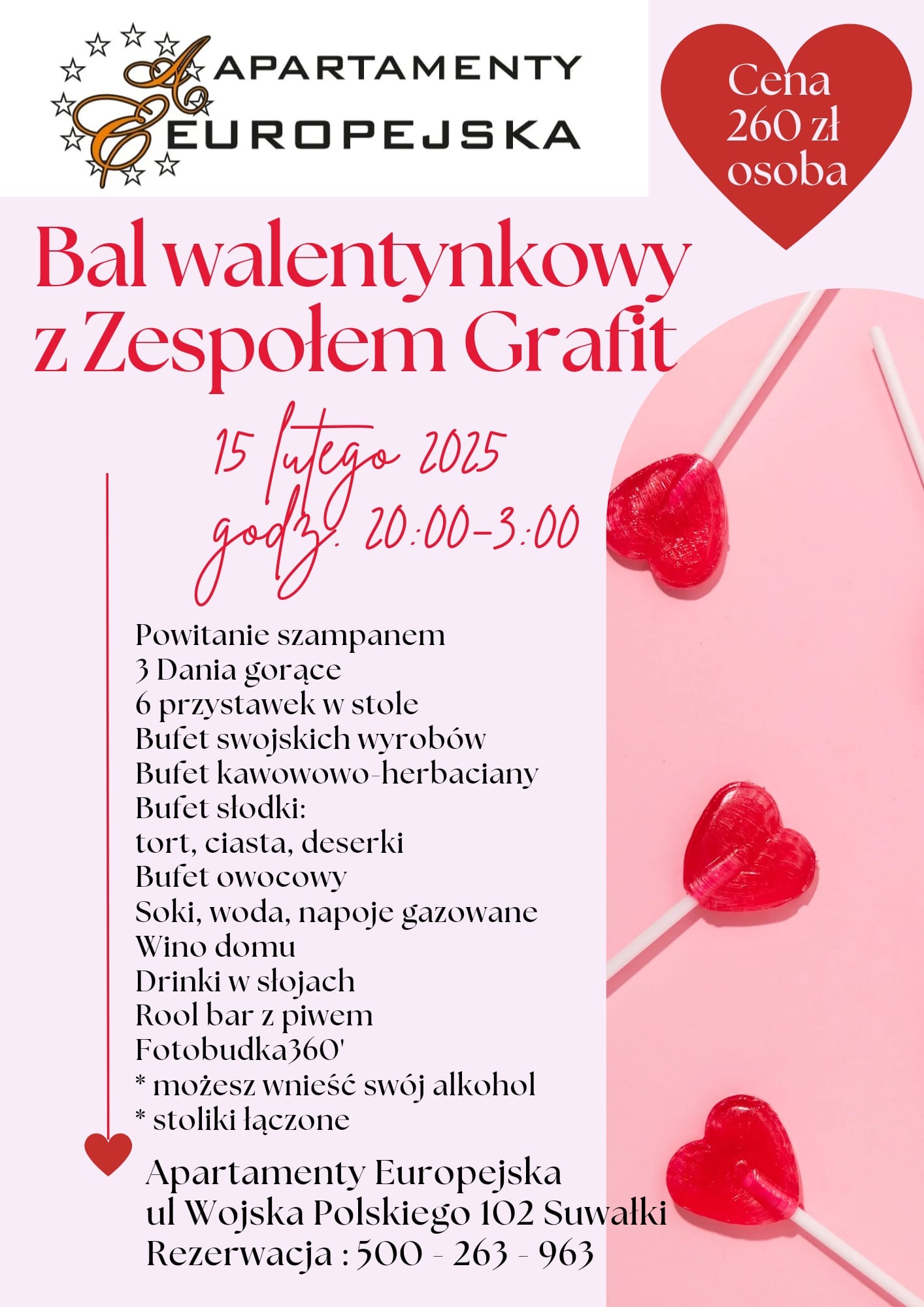 Rezerwacja stolików i miejsc pod nr. tel. 500 263 963