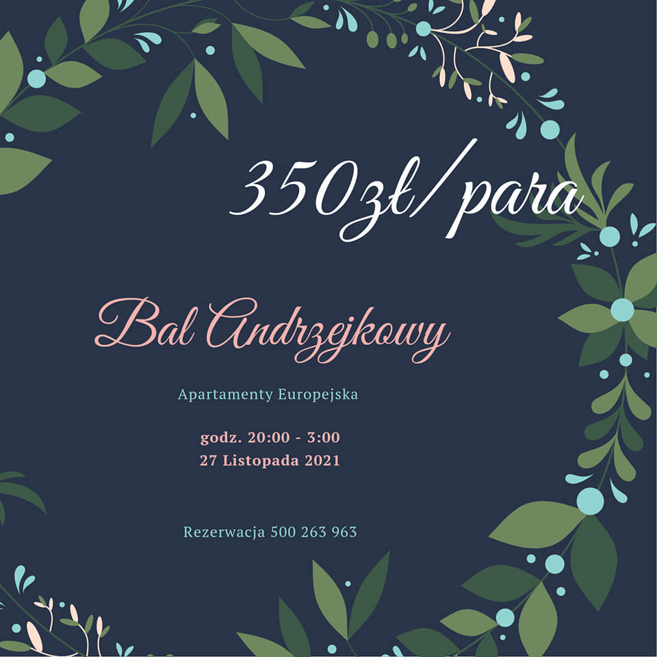 Także w sobotę, ale 27 listopada Apartamenty Europejska organizuje Bal Andrzejkowy.