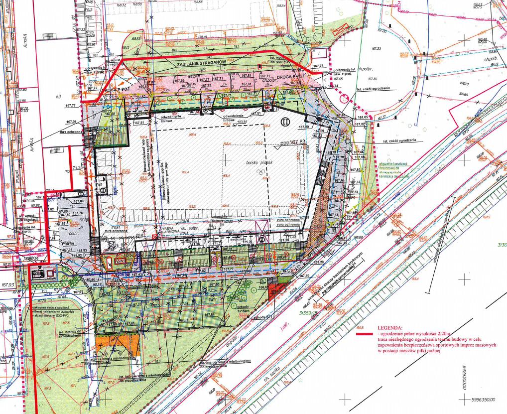 Przed budowlaÅ„cami stoi nie lada wyzwanie, bowiem w trakcie budowy bÄ™dzie użytkowany stadion do którego dobudowana zostanie hala. Mecze Wigier SuwaÅ‚ki w rundzie jesiennej piÅ‚karskiej I ligi bÄ™dÄ… odbywaÅ‚y siÄ™ przy udostÄ™pnieniu kibicom tylko jednego wejÅ›cia na promenadÄ™ gÅ‚ównej trybuny (prawego). W ograniczonym zakresie udostÄ™pnione zostanÄ… koÅ‚owroty, gÅ‚ówne wejÅ›cie oraz teren przed budynkiem klubowym. Zaostrzone przepisy o urzÄ…dzaniu imprez masowych wymuszÄ… na budowlaÅ„cach wygrodzenie budowy pÅ‚otem wysokim na ponad 2,2 metra. Plany uzgodnione z policjÄ… i strażą pożarnÄ…, przedstawiamy na poniższych ilustracjach.