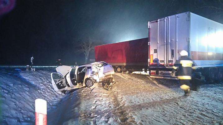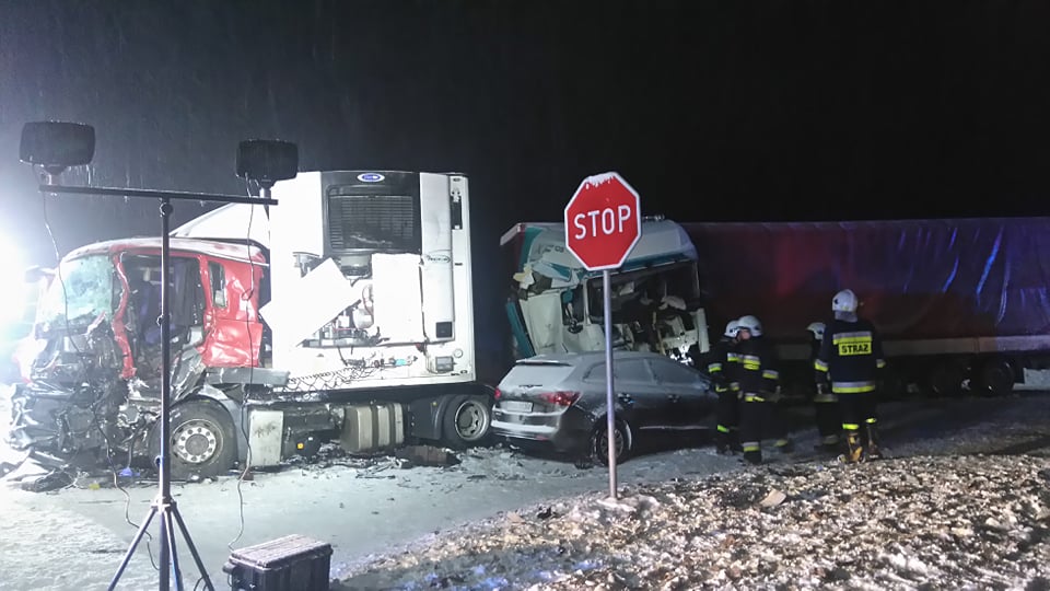 Do zderzenia dwóch samochodów osobowych i dwóch ciężarówek doszło po 17.00 na Drodze Krajowej nr 8 w pobliżu Sztabina. Droga jest całkowicie zablokowana. Na miejscu pracują służby. Wcześniej też strażacy i policjanci mieli pełne ręce roboty. Pierwsze obfite opady śniegu sprawiły, że jeździ się bardzo trudno. Na trasie Grajewo – Łomża doszło do wypadku śmiertelnego.