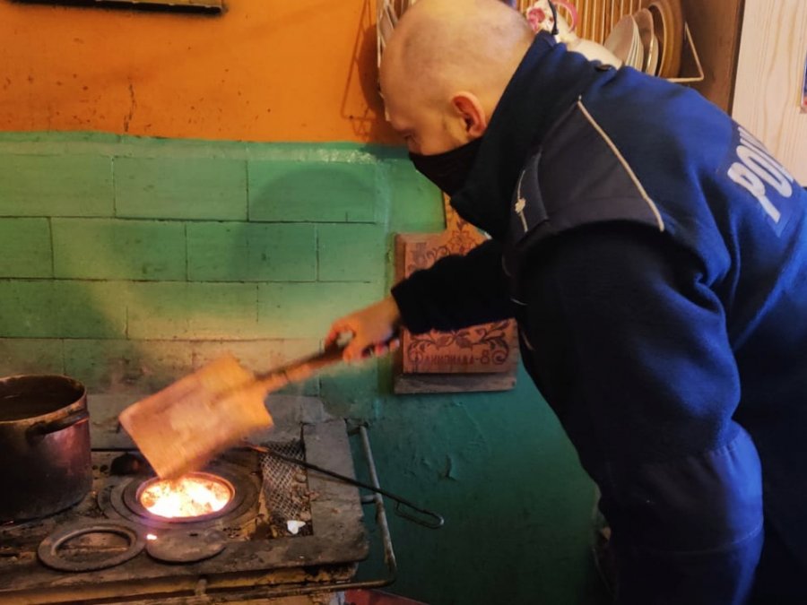 Augustowscy policjanci pomogli samotnie mieszkającej 84-latce. Kobieta z powodu choroby nie mogła wstać z łózka. W mieszkaniu było zimno, a seniorka była głodna. Funkcjonariusze rozpalili ogień w piecu i przygotowali kobiecie posiłek.