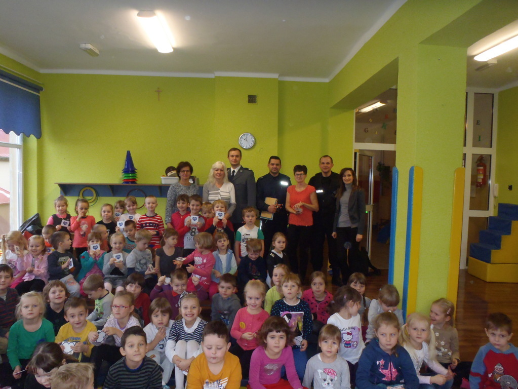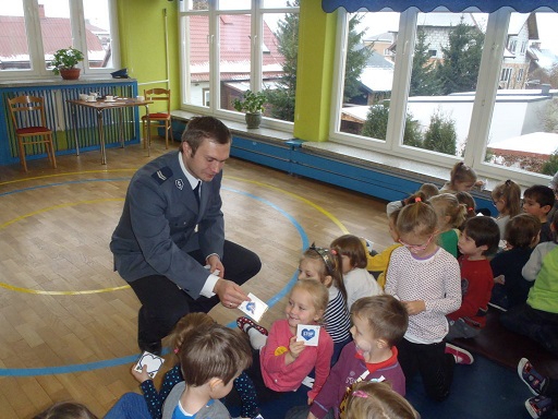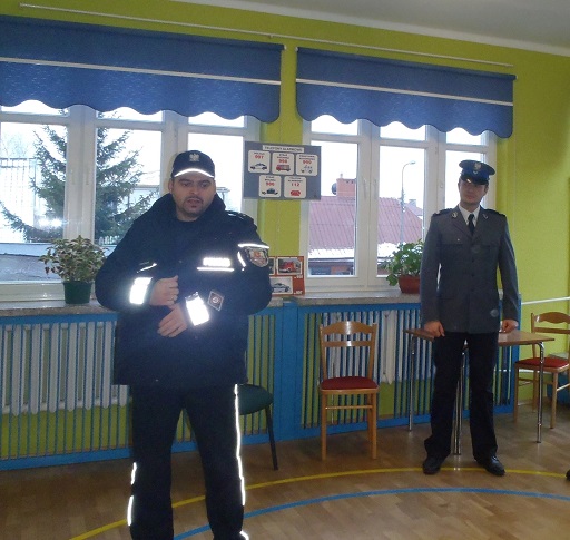 Mundurowi tłumaczyli też najmłodszym jak ważne dla bezpieczeństwa pieszego jest używanie elementów odblaskowych. Przypominali również o obowiązku noszenia ich poza terenem zabudowanym oraz zachęcali do używania odblasków w mieście. Na zakończenie spotkania przedszkolaki otrzymały serduszka, w ramach ogólnopolskiej kampanii „Kochasz? Powiedz Stop wariatom drogowym". Na sercach dzieci umieszczały rysunki, które następnie przekażą swoim rodzicom z prośbą o umieszczenie w samochodzie. Własnoręcznie wykonane prace będą zachęcać rodziców do bezpiecznej jazdy samochodem.