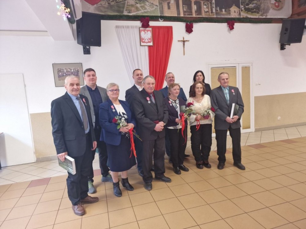 Medale Prezydenta RP i upominki wrÄ™czali: wójt Tomasz Naruszewicz, zastÄ™pca wójta Marcin Nowak, kierownik UrzÄ™du Stanu Cywilnego Marian Skupski oraz kierownik biblioteki Sylwia Ferenc. Po zÅ‚ożonych życzeniach miaÅ‚ miejsce drobny poczÄ™stunek, przy którym Jubilaci wspominali ciekawe wydarzenia ze swego życia. Jubilatom życzymy dużo zdrowia i radoÅ›ci w swych zwiÄ…zkach.
