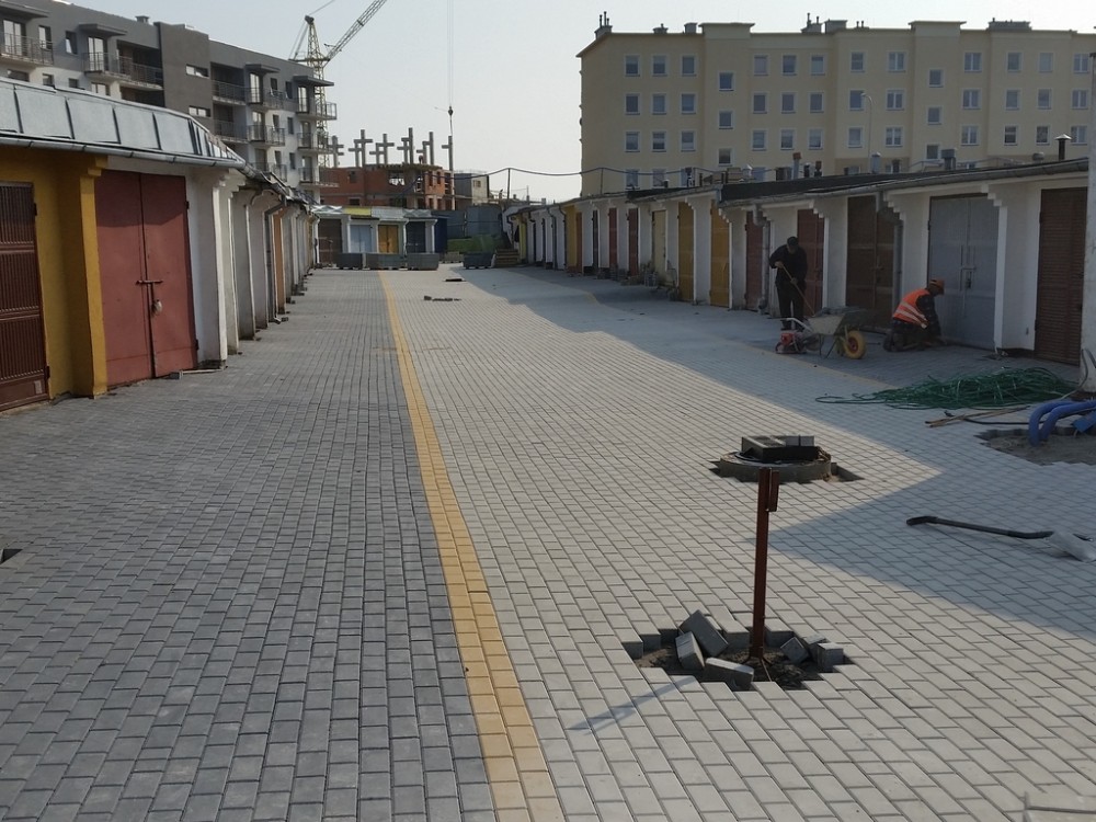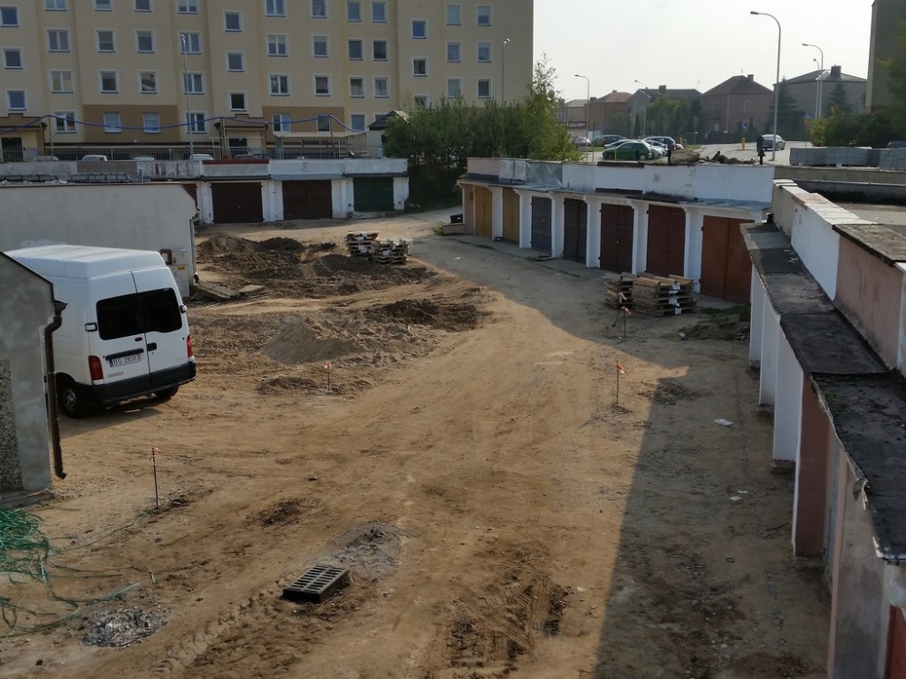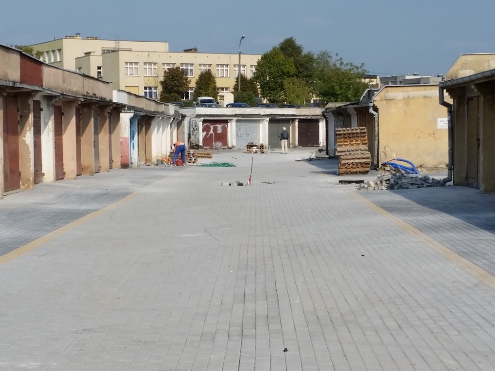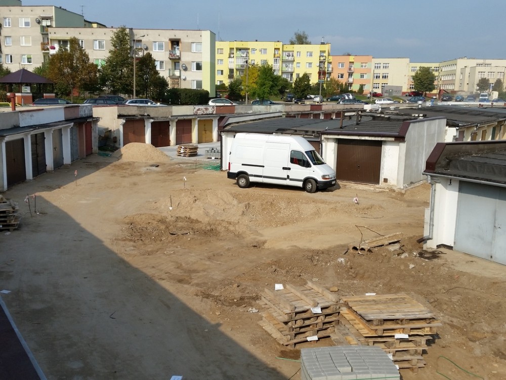 Teraz to siÄ™ zmieni. Plac bÄ™dzie oÅ›wietlony. Wykonane zostanie odwodnienie terenu a drogi i podjazdy do garaży zostanÄ… utwardzone. W sumie kostkÄ… betonowÄ… wyÅ‚ożone zostanie blisko 5 tys. metrów kwadratowych!