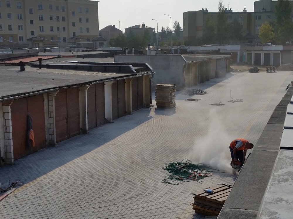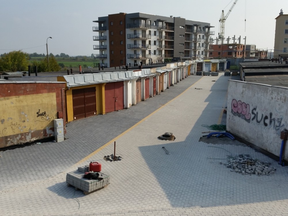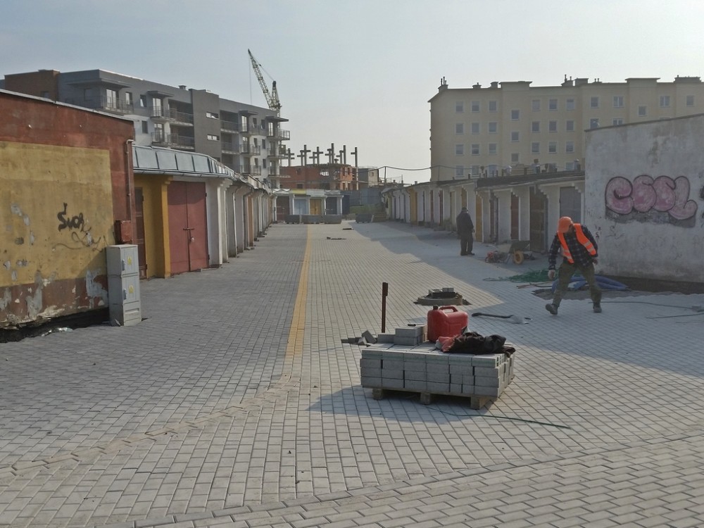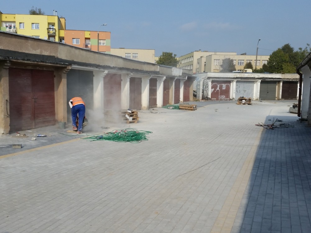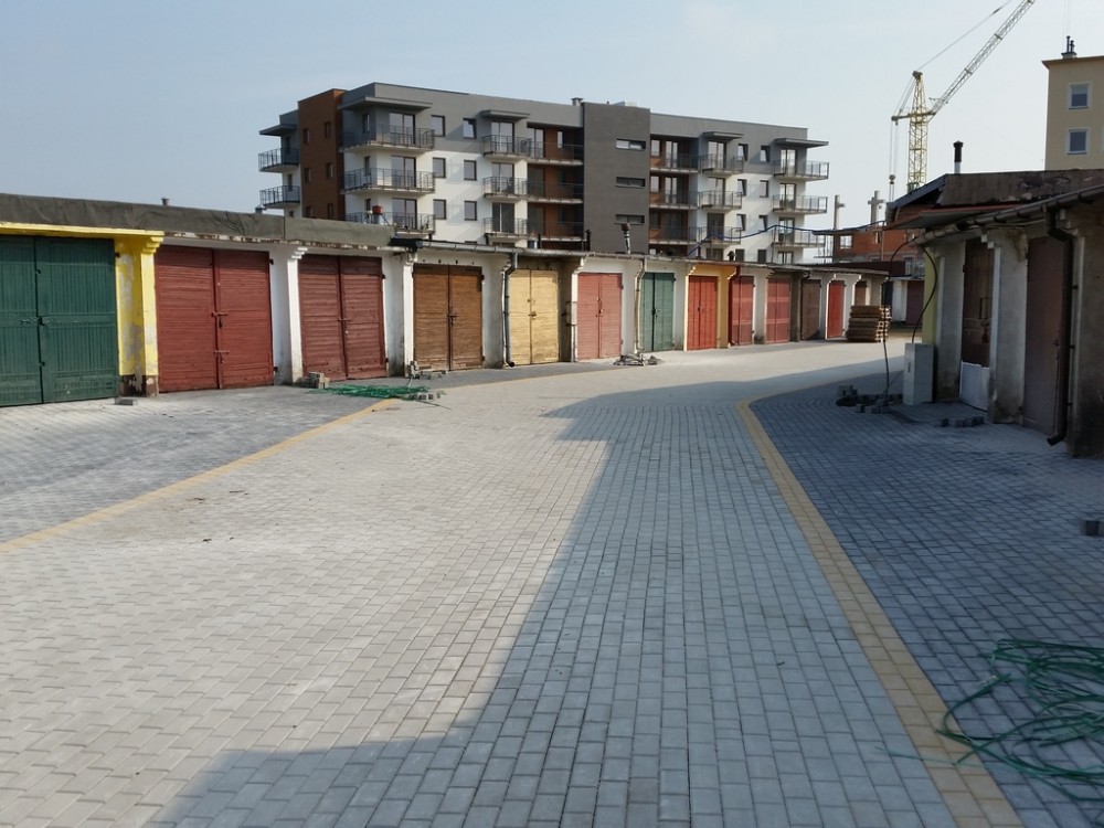 Teraz to siÄ™ zmieni. Plac bÄ™dzie oÅ›wietlony. Wykonane zostanie odwodnienie terenu a drogi i podjazdy do garaży zostanÄ… utwardzone. W sumie kostkÄ… betonowÄ… wyÅ‚ożone zostanie blisko 5 tys. metrów kwadratowych!