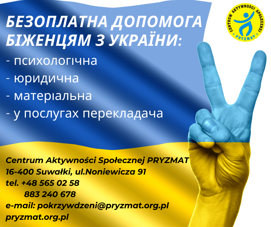 Centrum Aktywności Społecznej PRYZMAT oferuje bezpłatną pomoc dla uchodźców z Ukrainy: