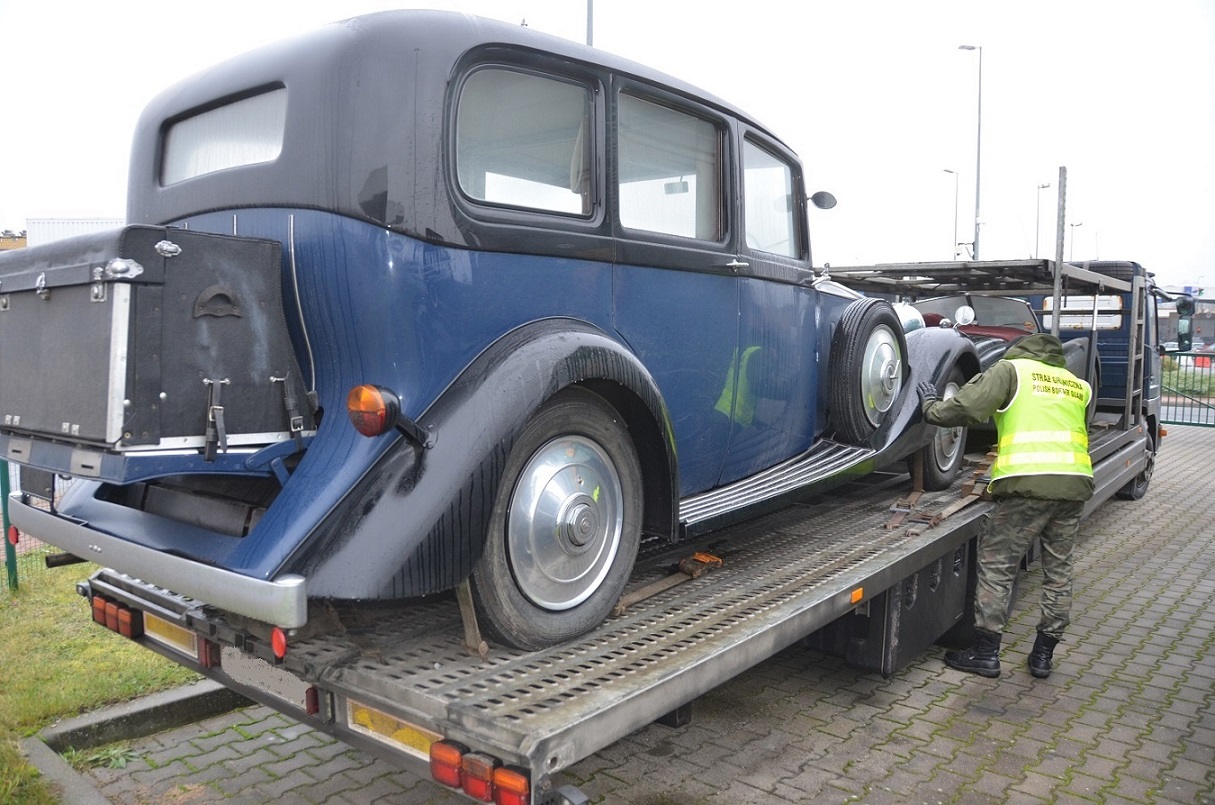 Do odprawy granicznej na terenie drogowego przejÅ›cia granicznego w Kuźnicy na wyjazd z Polski zgÅ‚osiÅ‚ siÄ™ obywatel BiaÅ‚orusi. Mężczyzna na lawecie wiózÅ‚ trzy auta kupione w Holandii nastÄ™pujÄ…cych marek: Franklin Airman typ 12A z 1928 r., Rolls-Royce z 1937 r. i Jaguar z 1951 r.