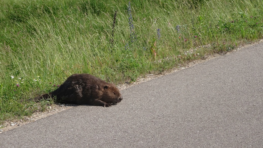 Bobry żyją przeważnie w małych rzeczkach, na podmokłych łąkach. My natomiast spotkaliśmy ostatnio bobra wędrującego szosą w kierunku Szelmentu. Czyżby wybrał się na narty wodne?