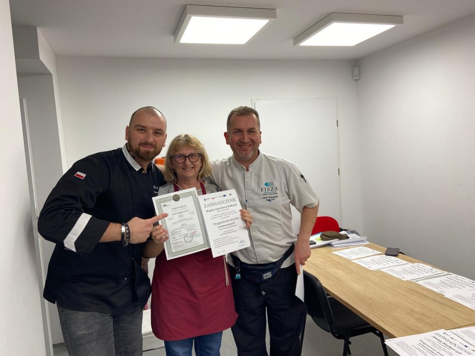 Warsztaty pod nazwą: ,,Przygotowanie deserów restauracyjnych”, odbywały się pod okiem znanego w regionie szefa kuchni Kamila Babkowskiego. Wzięło w nich udział 12 pań z Gminy Raczki. Wszystkie otrzymały europejskie certyfikaty ukończenia profesjonalnego kursu kulinarnego.