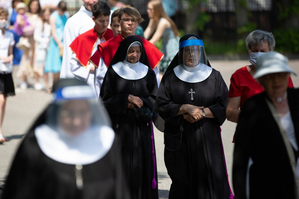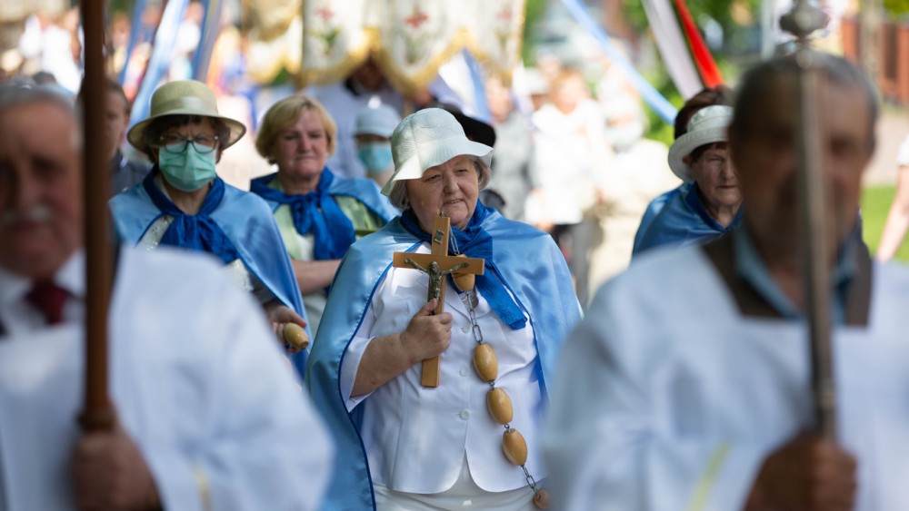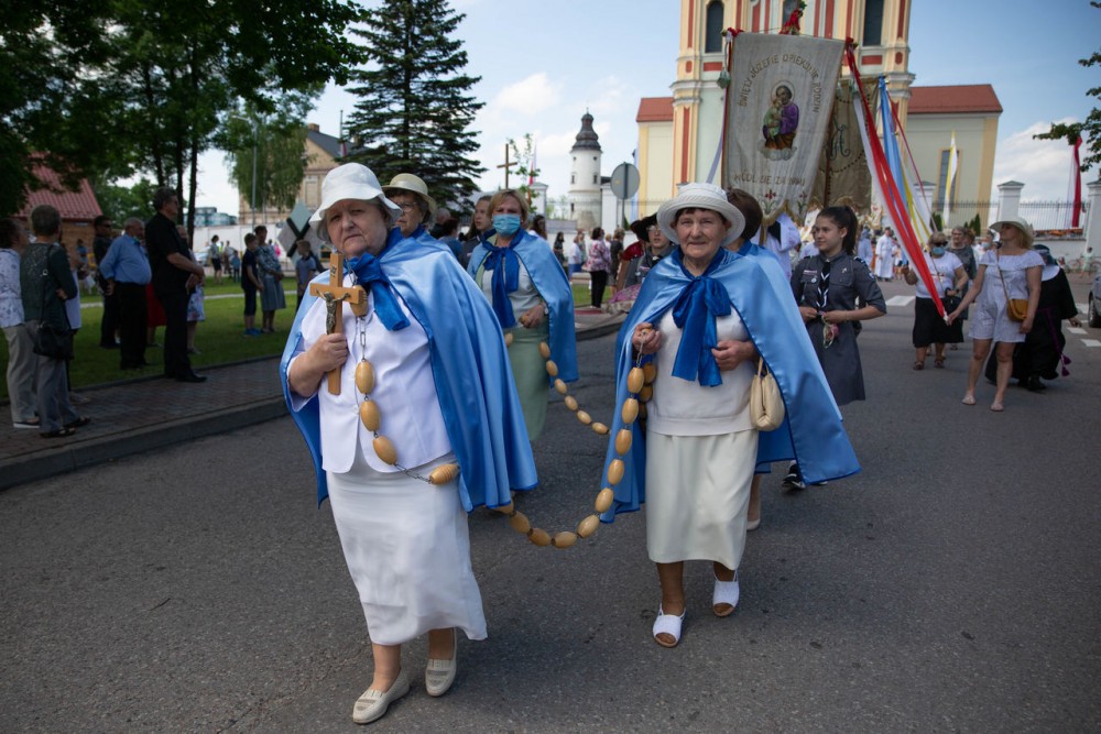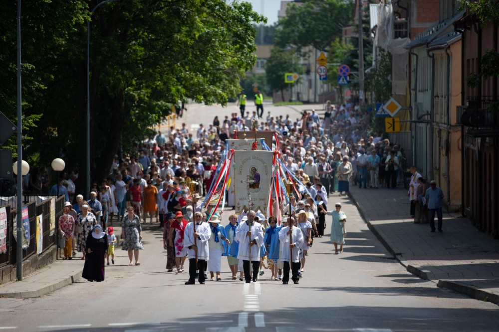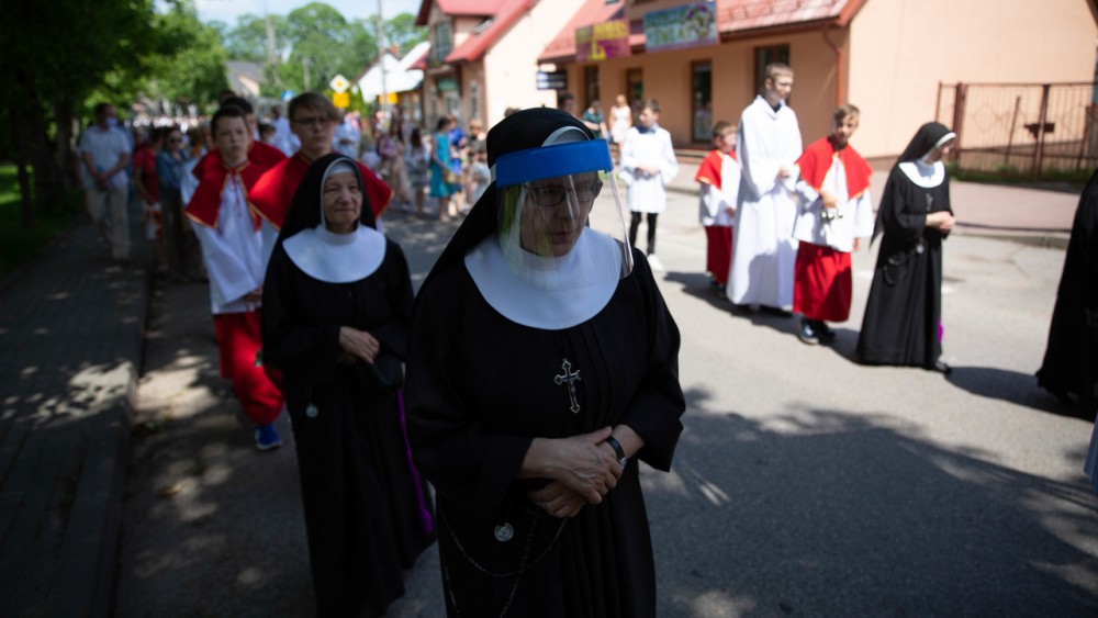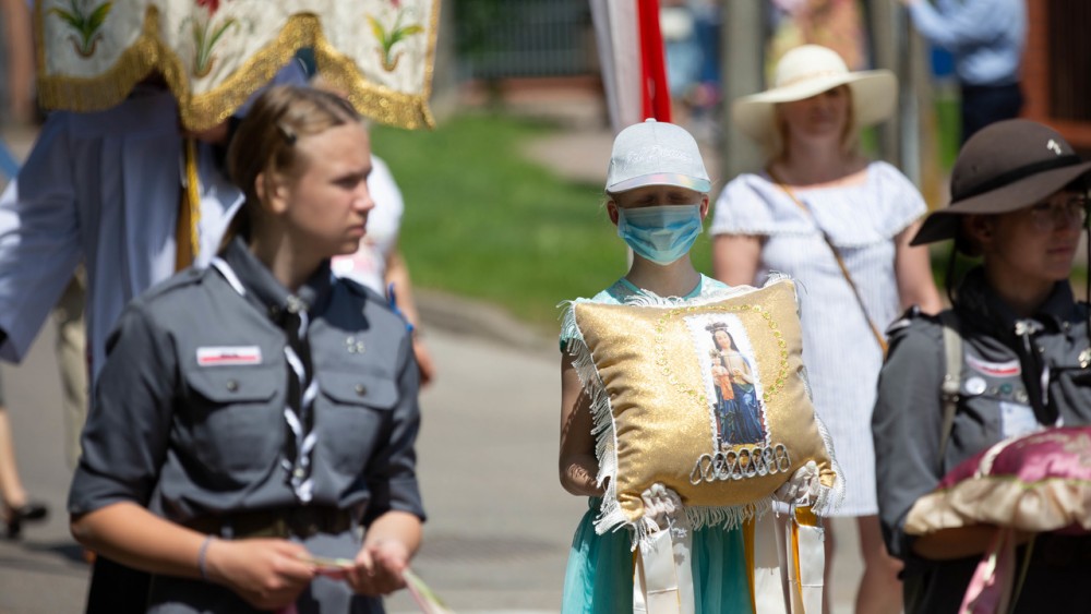 W Sejnach wierni przeszli ulicami miasta, ale wielu z nich miało maseczki. Księża przypominali też o obowiązku zachowaniu dystansu.