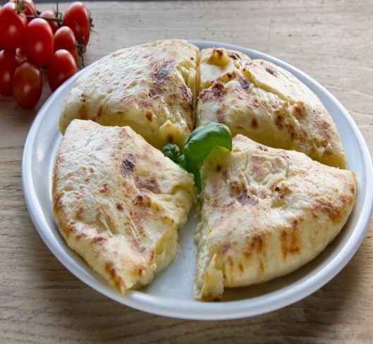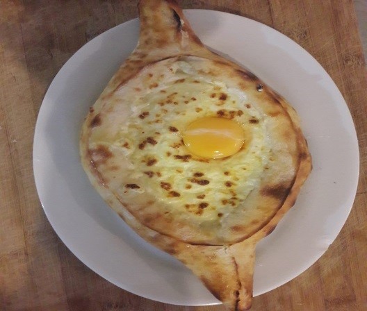 Chaczapuri Adżarskie - (chaczapuri adżaruli) to jedno z najpopularniejszych gruziÅ„skich daÅ„. Bardzo sycÄ…ca potrawa w formie Å‚ódki z drożdżowego ciasta, w której znajduje siÄ™ ser, jajko oraz masÅ‚o.