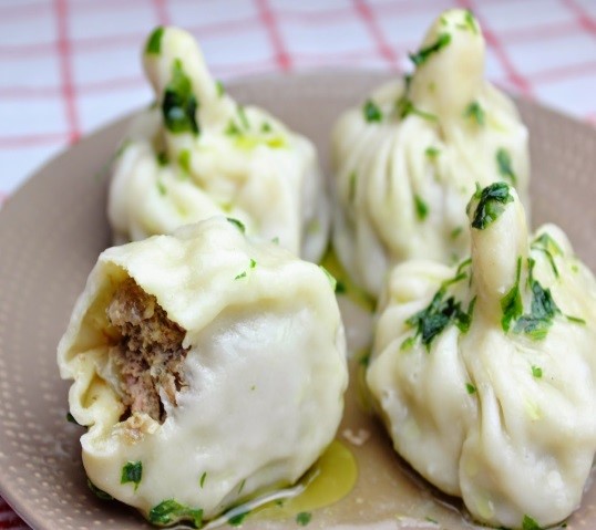 Chinkali - SÄ… to pierogi z miÄ™sem, w każdym pierogu znajduje siÄ™ bulion, który siÄ™ wypija po rozgryzieniu.
