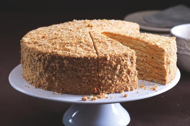 Medovník(tapliani)– ciasto z cienkich blatów miodowych przeÅ‚ożonych kremem kajmakowym