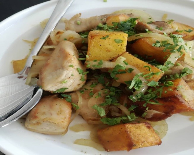 Odżachuri - kawałki mięsa cielęcego zapiekane z ziemniakami i cebulą