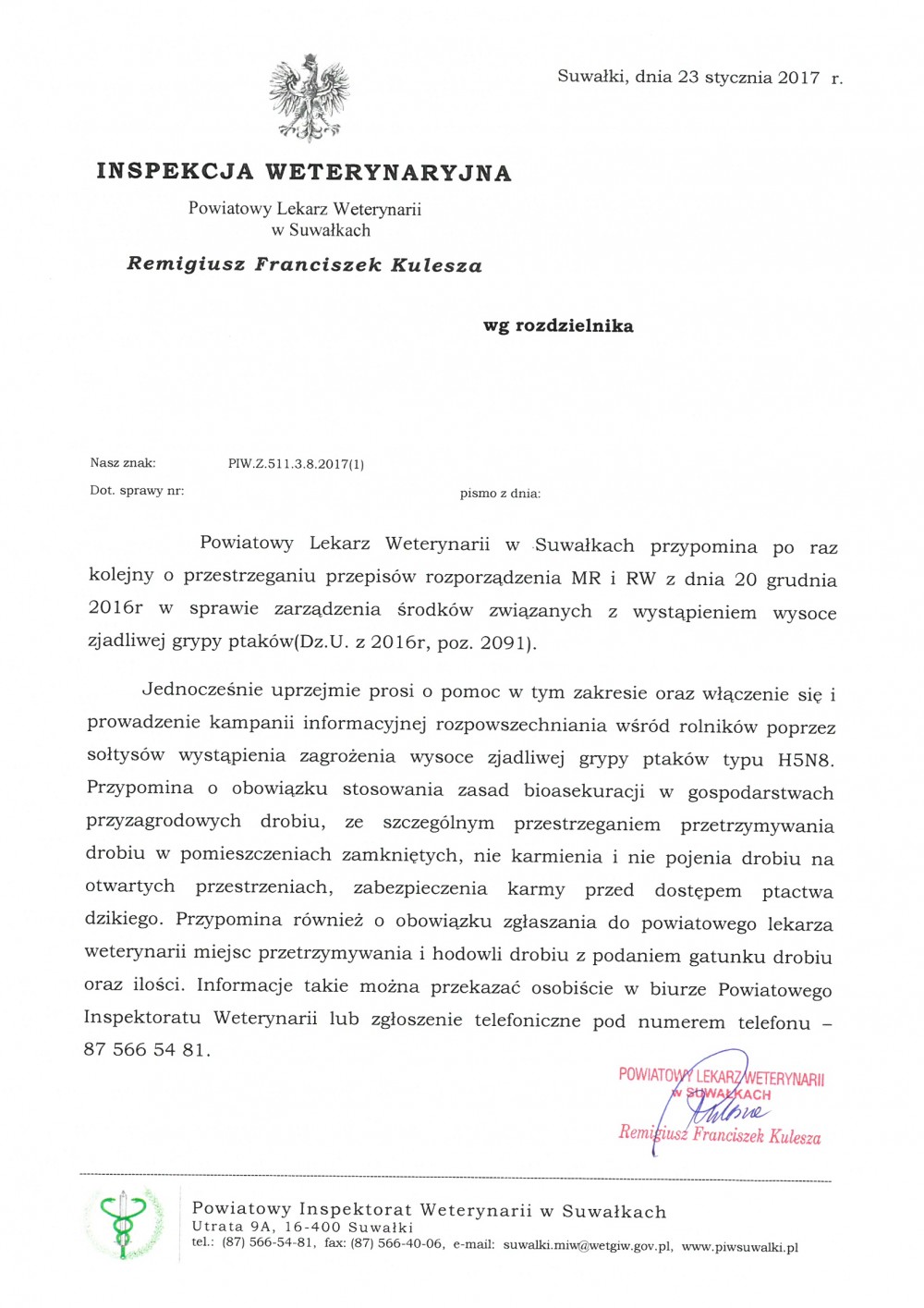 - Ale wysoce zjadliwa grypa ptaków atakuje nie tylko wielkie fermy, ale również ptaki żyjące w kurnikach. Wybija się również po 10-15 sztuk – tłumaczy powiatowy inspektor weterynarii. – Dlatego też do odwołania kury, kaczki, gęsi, indyki, wszystkie ptaki domowe powinny pozostawać w zamknięciu. Nie wolno ich wypuszczać z kurników, ani karmić na zewnątrz. Pojemniki na wodę i paszę powinny zostać zabezpieczone przed dzikimi ptakami – tłumaczy inspektor.