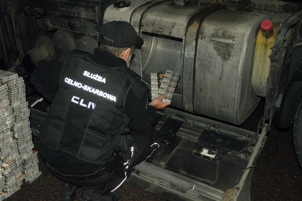 Funkcjonariusze KAS z Budziska zatrzymali do kontroli na drodze krajowej nr 8 ciężarówkę kierowaną przez 59-letniego mieszkańca woj. podlaskiego. W trakcie rewizji poprzedzonej prześwietleniem rentgenowskim mundurowi odkryli, że w przerobionym zbiorniku paliwa ukryte są nielegalne papierosy. Łącznie w kontrolowanej ciężarówce funkcjonariusze znaleźli 5500 paczek białoruskich papierosów o szacunkowej wartości rynkowej ponad 77 tys. zł.