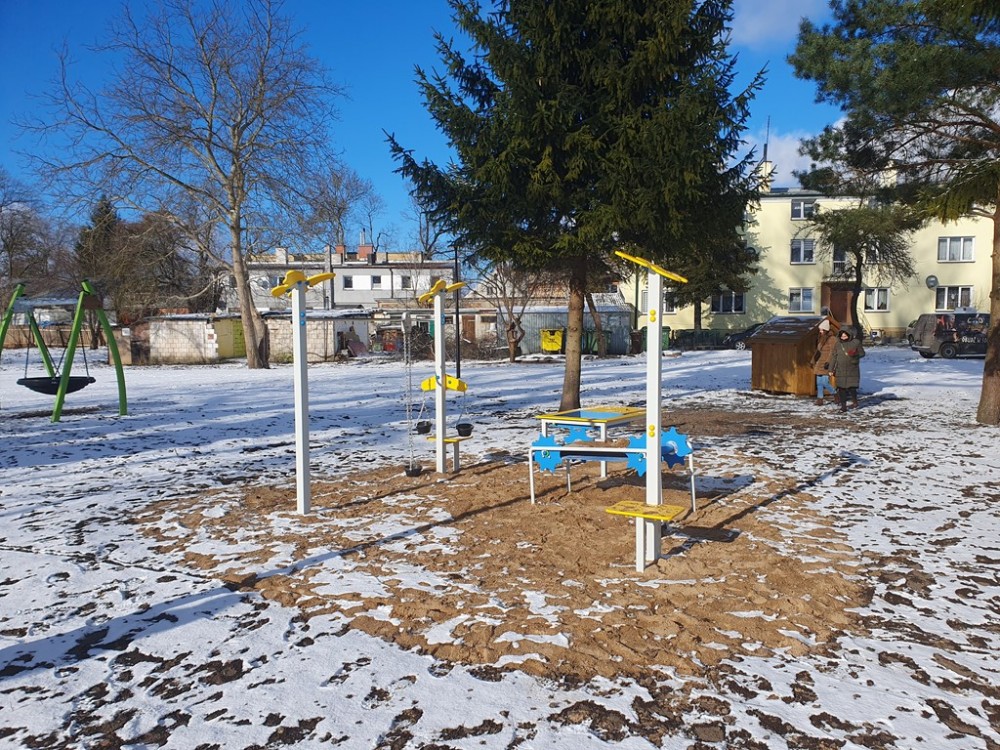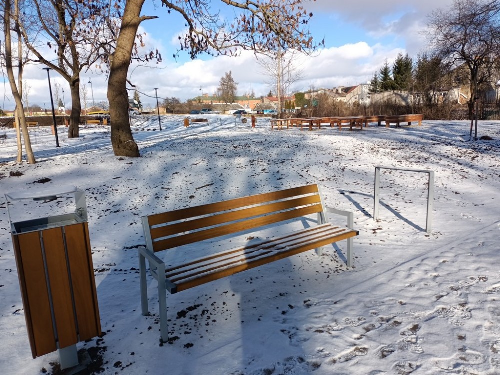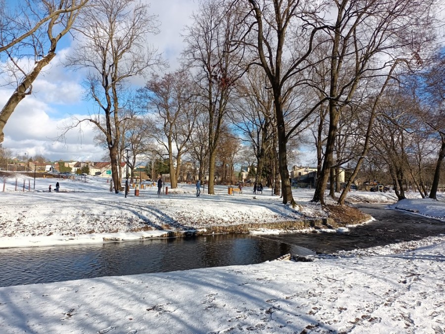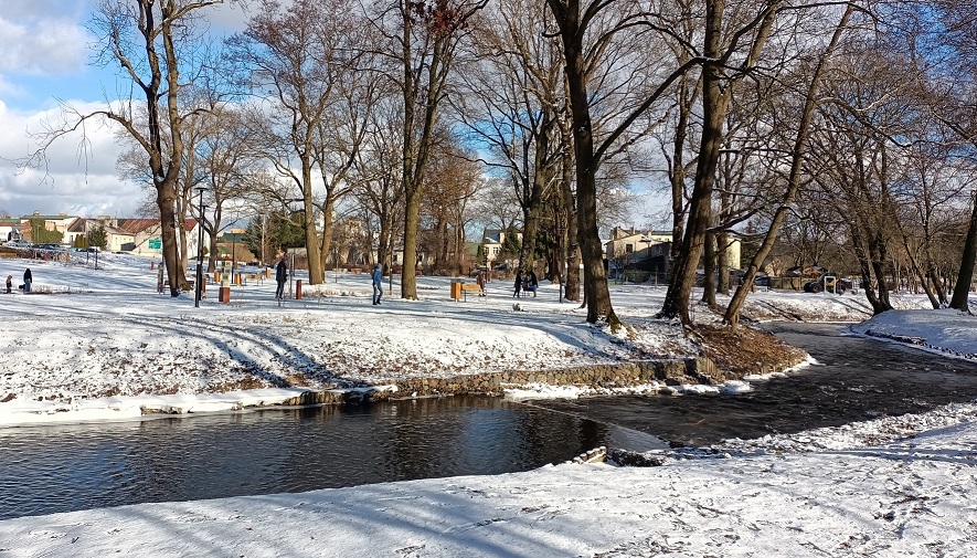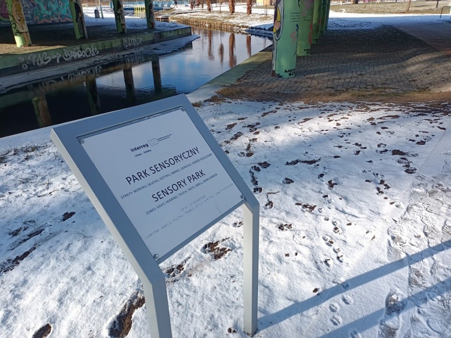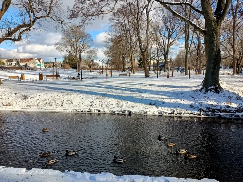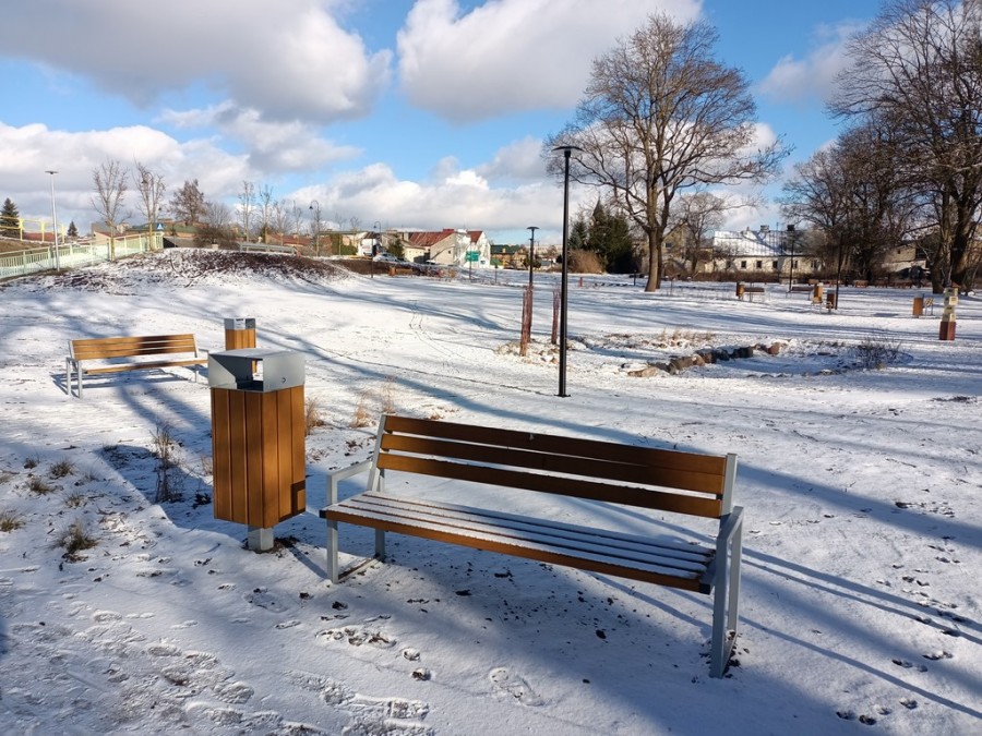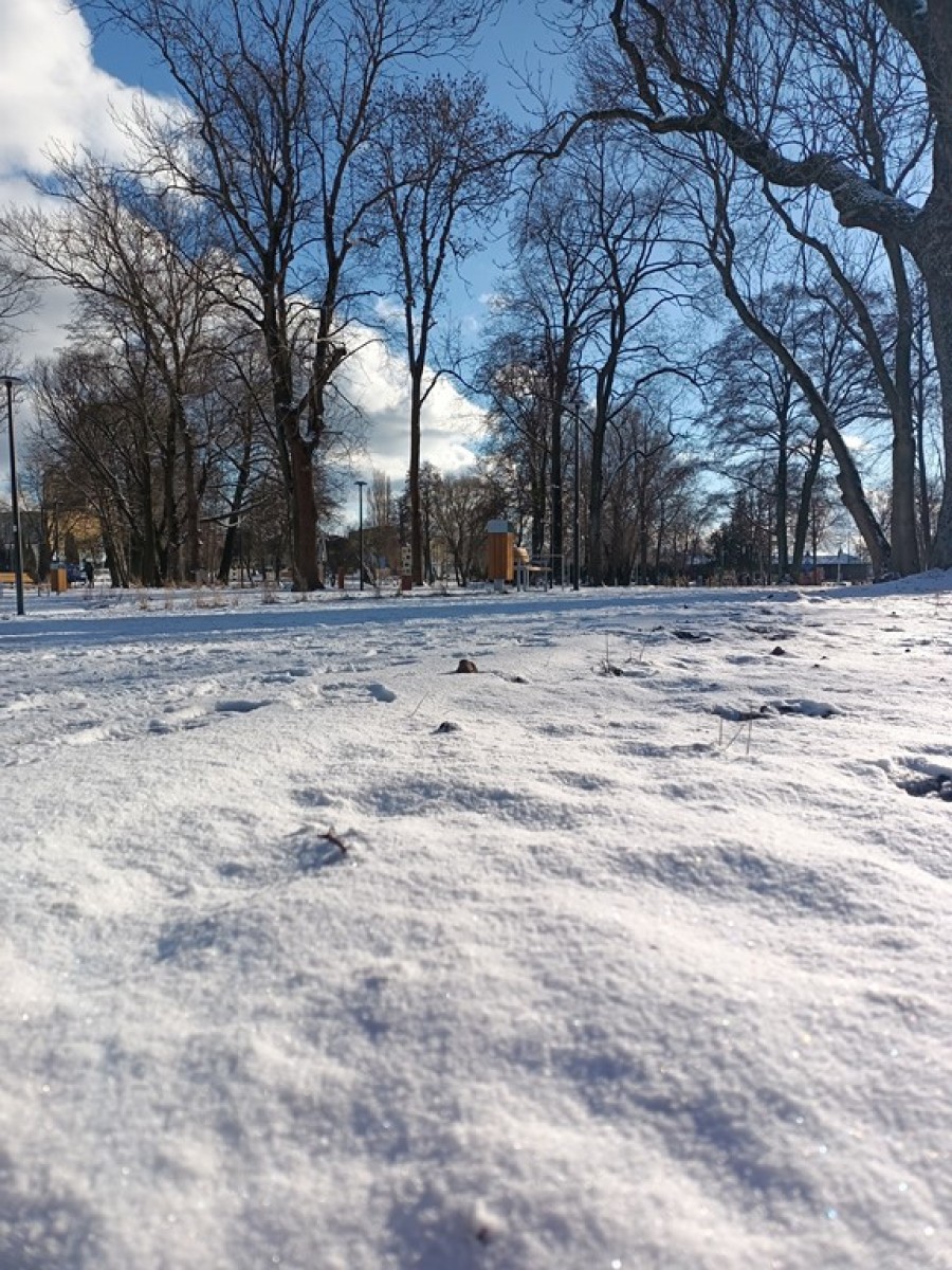 Po sobotnich opadach śniegu, na wzrok oddziaływuje kolor bieli. W niedzielę spacerowicze bawili się dźwiękowymi elementami wyposażenia parku. Będzie to doskonałe miejsce zajęć dla dzieci.