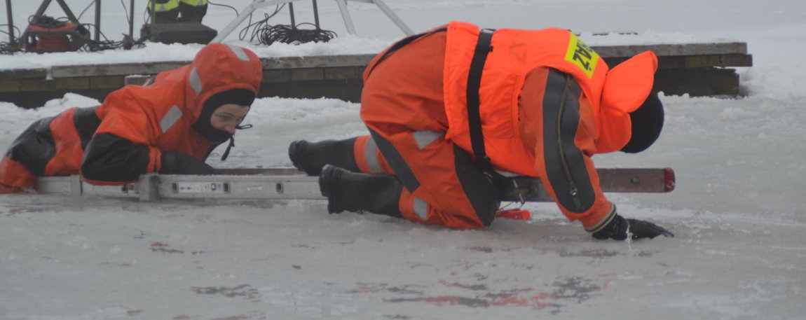 Na zamarzniętym Zalewie Arkadia w Suwałkach odbyły się w środę ćwiczenia ratownictwa lodowego. Strażacy, ratownicy WOPR i policjanci ćwiczyli wydobywanie osoby, pod którą załamał się lód.