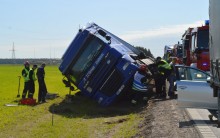 Na miejsce przybyli strażacy oraz inspektor ochrony Å›rodowiska, ponieważ doszÅ‚o do wycieku paliwa ze zbiornika oraz na naczepie ciężarówki przewożony byÅ‚ nietypowy Å‚adunek – sadza w workach typu Big Bag.