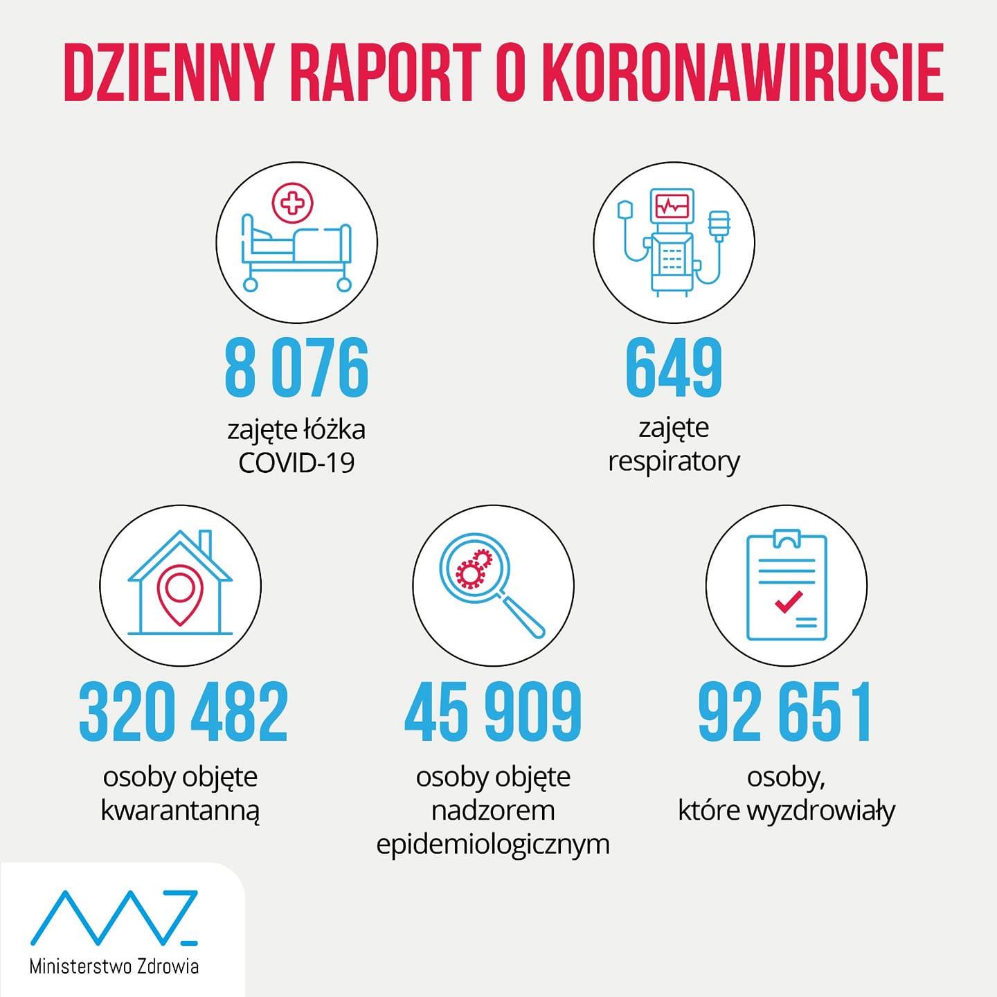Ministerstwo Zdrowia poinformowało o 8 536 nowych i potwierdzonych przypadkach zakażenia koronawirusem z województw: