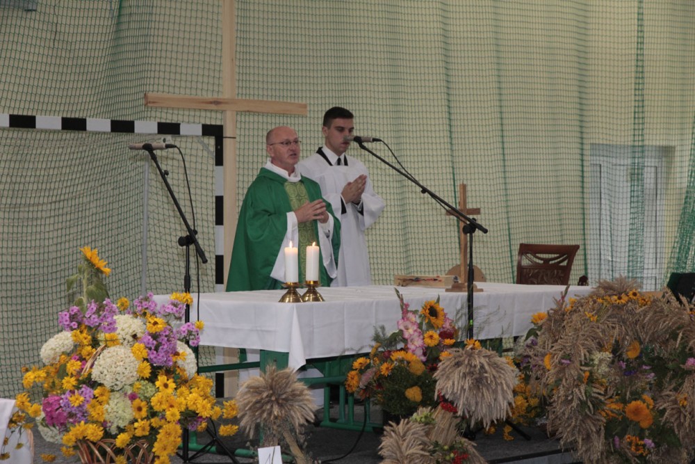 Tradycyjnie Gminne Święto Plonów rozpoczęła msza święta w intencji rolników, w czasie której starostowie dożynek Lucyna i Bogdan Golubek z Potaszni na ręce gospodarza gminy, którym w tym dniu był Zbigniew Mackiewicz, sekretarz Gminy Suwałki, zastępujący nieobecnego wójta Tadeusza Chołko, przekazali wielki bochen chleba upieczonego z mąki ze zboża z tegorocznych zbiorów, chleba którym gospodarz podzielił się z uczestnikami dożynek.