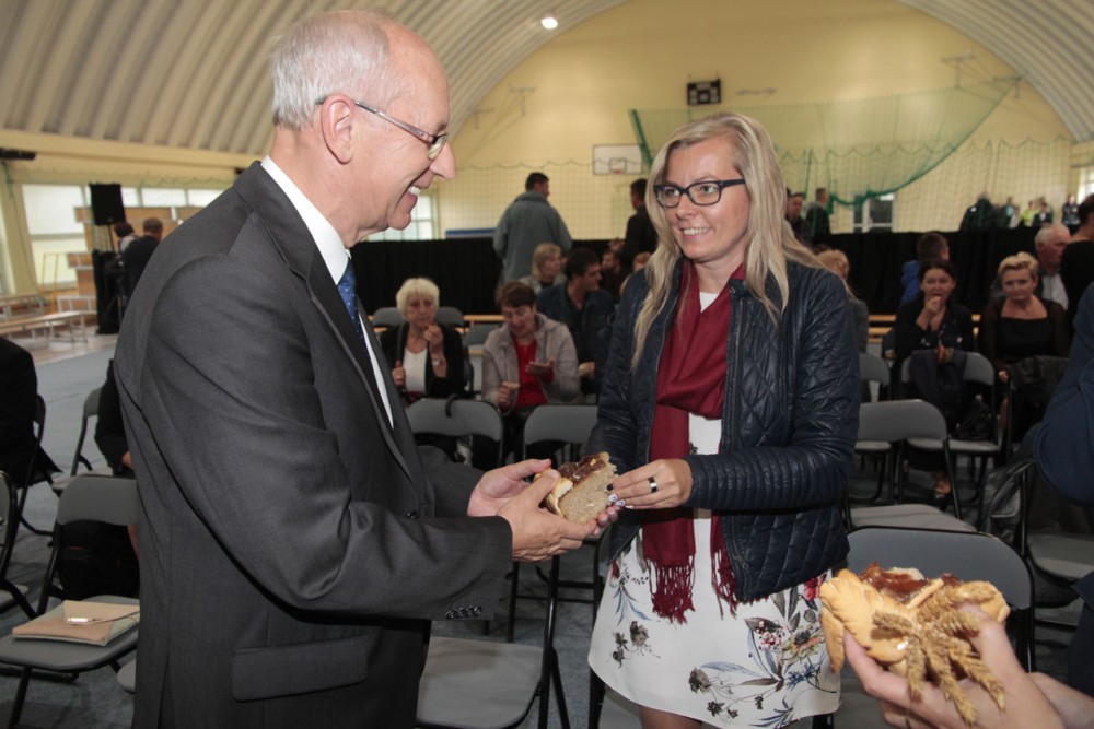- Dożynki to czas podziękowań Bogu za tegoroczne plony i ludziom za trud i pracę. Dziś świętujemy zakończenie żniw, aczkolwiek wiemy, że ze względu na pogodę żniwa jeszcze trwają. Wszyscy z szacunkiem i uznaniem myślimy dziś o naszych rolnikach, bowiem chleb produkowany od wieków przez mieszkańców polskich wsi jest dla nas wszystkich podstawą codziennej egzystencji – zwracając się do rolników i gości dożynek mówił Zbigniew Mackieiwcz. - Dożynki przypominają nam, że to właśnie dzięki ciężkiej pracy rolnika codziennie trafia na stoły naszych rodzin polski chleb. Obchodzimy dzisiaj uroczyście święto plonów naszej gminnej ziemi - oceniając efekty całorocznej trudnej pracy rolników. Ziemia, która jest warsztatem pracy rolnika, rodzi i karmi. Ziemia pozbawiona opieki nie daje plonów, pielęgnowana zaś jest naszą żywicielką. Z wdzięcznością i szacunkiem pochylamy głowę przed tymi, którzy tę ziemię uprawiają. Łączymy się dziś z rolnikami z terenów północnej Polski, przez których gospodarstwa przeszła sierpniowa wichura, która spustoszyła pola uprawne, uszkodziła wiele domów i całych gospodarstw. To pokazuje jak człowiek jest bardzo zależny od sił natury. Dla Wójta Gminy i Rady Gminy Suwałki rolnictwo w naszej gminie jest bardzo ważne, a działalność rolniczą ciągle chcemy doceniać i wspierać, chociażby poprzez budowę sieci wodociągowych, sieci kanalizacyjnych, przydomowych oczyszczalni ścieków, nowych dróg oraz stwarzanie lepszych warunków życia dla wszystkich mieszkańców Gminy. Drodzy rolnicy! W imieniu Wójta Gminy Suwałki oraz swoim własnym i w imieniu pracowników całego urzędu gminy proszę przyjąć słowa uznania, szacunku i satysfakcji dla trudu codziennej pracy rolnika, życzę dużo wytrwałości, zdrowia i wszelkich łask bożych dla Was i Waszych Rodzin.