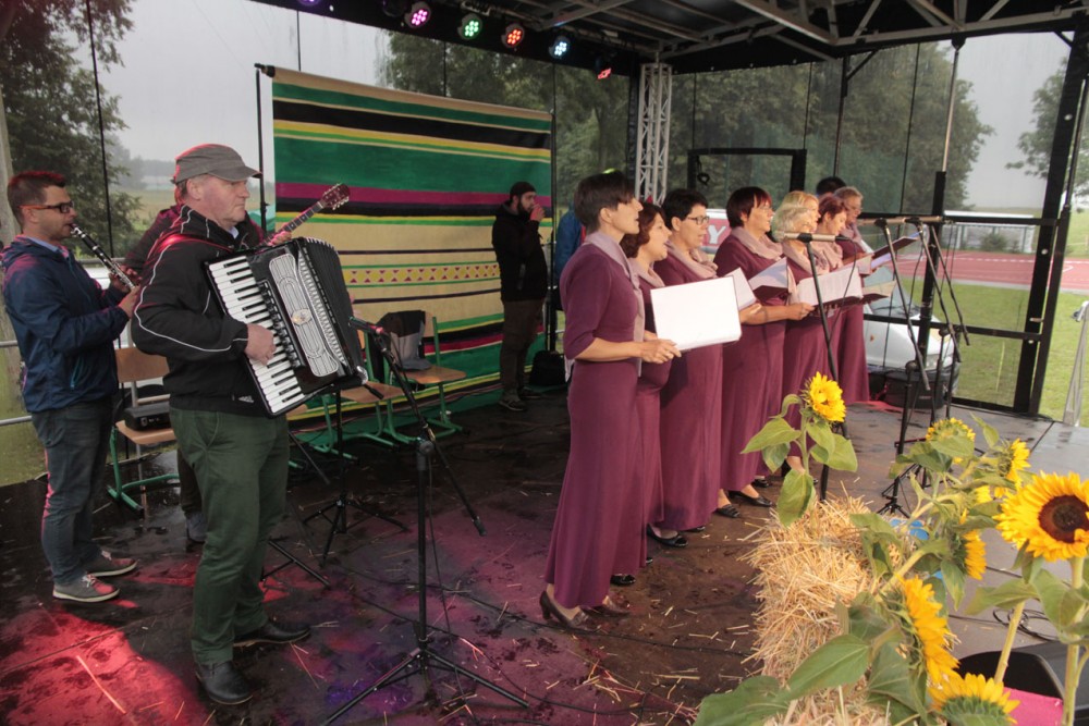 Na boisku Zespołu Szkół w Przebrodzie, gdzie odbyły się dożynki, każdy mógł znaleźć coś dla siebie. Organizatorzy przygotowali gry i zabawy dla dzieci i dorosłych, swoje dzieła wystawiali twórcy ludowi, a wyroby sprzedawali producenci żywności.