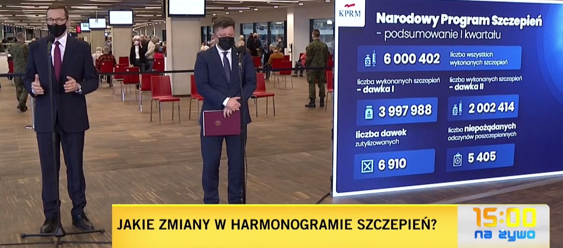 Do końca marca zaszczepionych będzie 6 milionów osób, do końca kwietnia 20 mln, a do końca sierpnia tego roku powinni być już szczepieni wszyscy Polacy, którzy zechcą przyjąć szczepionke. Podczas konferencji prasowej premier Mateusz Morawiecki i przedstawiciele ministerstwa zdrowia przedstawili zmiany, jakie zajdą w procesie szczepień.