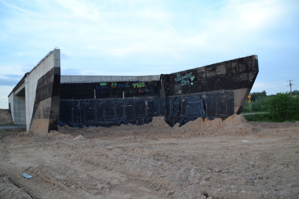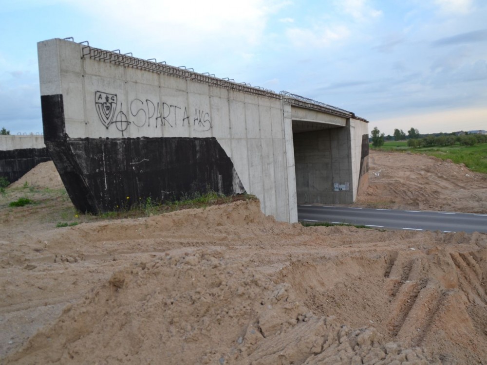 Pierwszy projekt obwodnicy Augustowa przewidywaÅ‚ budowÄ™ jednego wiaduktu. Obecnie budowanych jest ich kilkanaÅ›cie. Budimex, który w 2007 roku wygraÅ‚ pierwszy przetarg, prace rozpoczÄ…Å‚ wÅ‚aÅ›nie od budowy przejazdu nad trasÄ… Augustów - Raczki. Po protestach ekologów, prace wstrzymano, a firma zainkasowaÅ‚a 22 mln zÅ‚ odszkodowania za przerwane prace. O tym ile lat minęło od tego czasu Å›wiadczÄ… wyblakÅ‚e plakaty z poprzednich wyborów parlamentarnych, które wiszÄ… na przÄ™sÅ‚ach wiaduktu.
