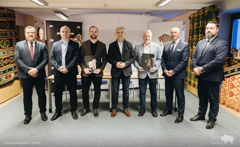 W spotkaniu uczestniczyli przewodniczący sejmiku Cezary Cieślukowski, wójt Gminy Raczki Piotr Gajda i burmistrz Sejn Dorian Krause.