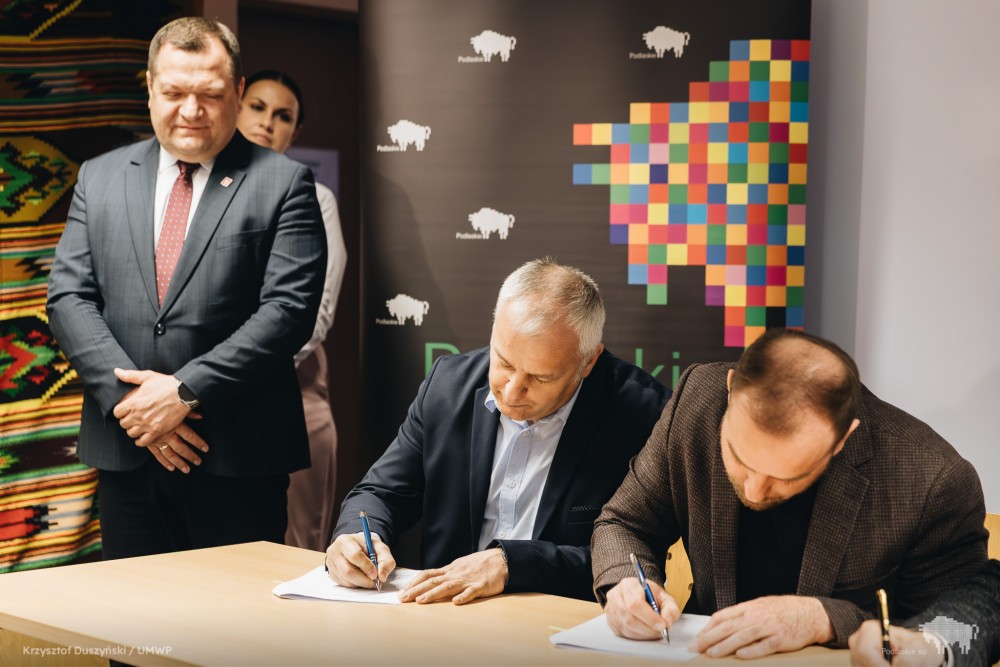 Członek zarządu województwa Bogdan Dyjuk podpisał dzisiaj umowy z przedstawicielami Sejneńskiego Klubu Sportowego Pomorzanka Sejny oraz Klubu Sportowego Polonia Raczki na dotacje z budżetu Województwa Podlaskiego.