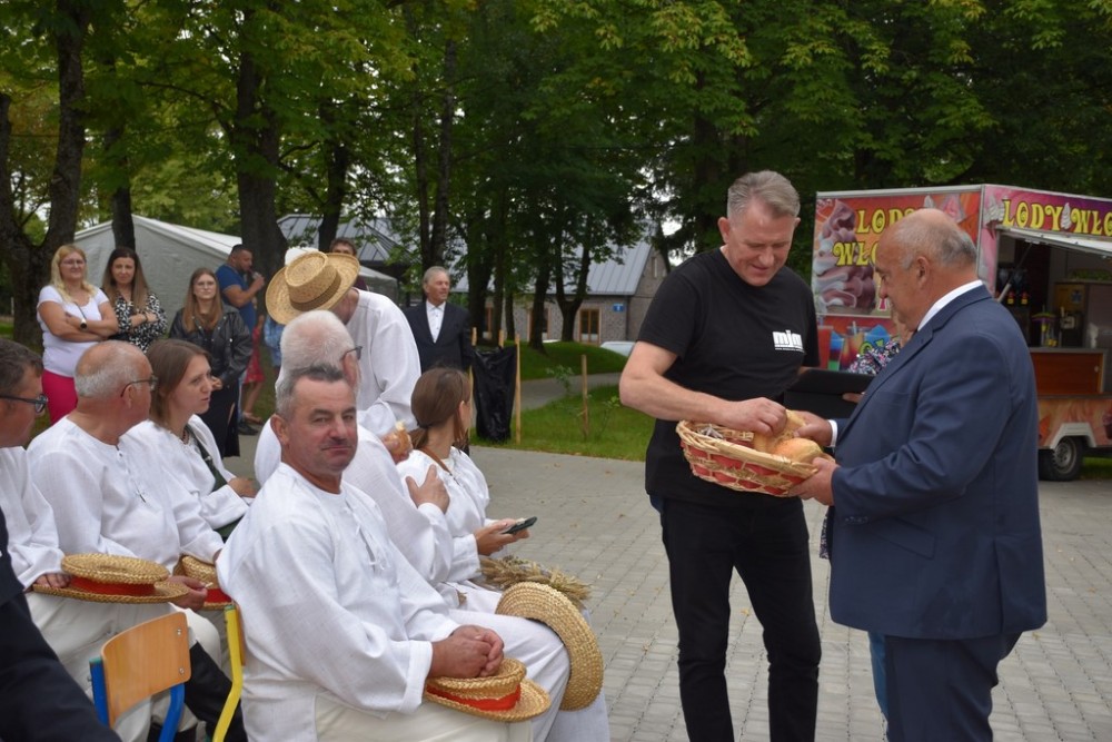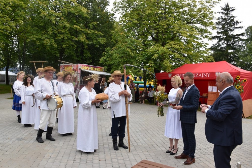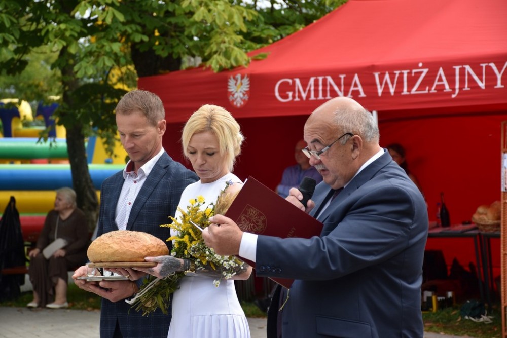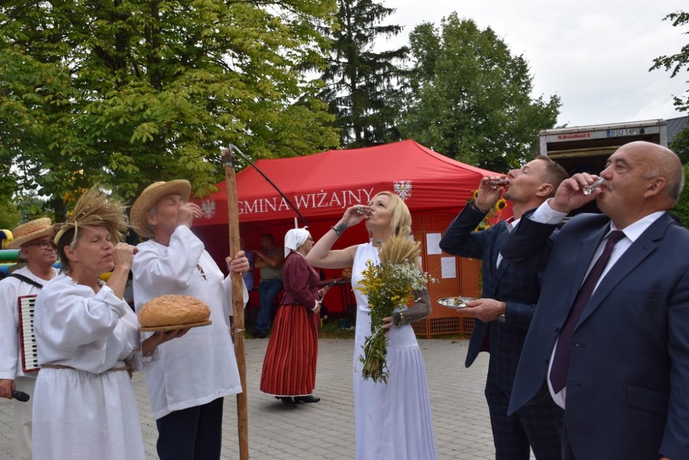 W widowisku wziÄ™li udziaÅ‚ Wójt Gminy Wiżajny StanisÅ‚aw Jacek Pietrukiewicz wraz z tegorocznymi Starostami Dożynek PaÅ„stwem JoannÄ… i SÅ‚awomirem StasiÅ„skimi w roli gospodarzy, którzy przygotowali ucztÄ™ żniwiarzom wracajÄ…cym z pola.