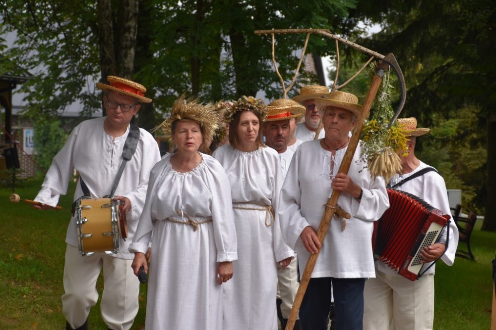 Po mszy odbyÅ‚o siÄ™ wyjÄ…tkowe widowisko obrzÄ™dowe dożynkowe, przedstawione przez ZespóÅ‚ Mżawka z Gminnego OÅ›rodka Kultury w Kruklankach.